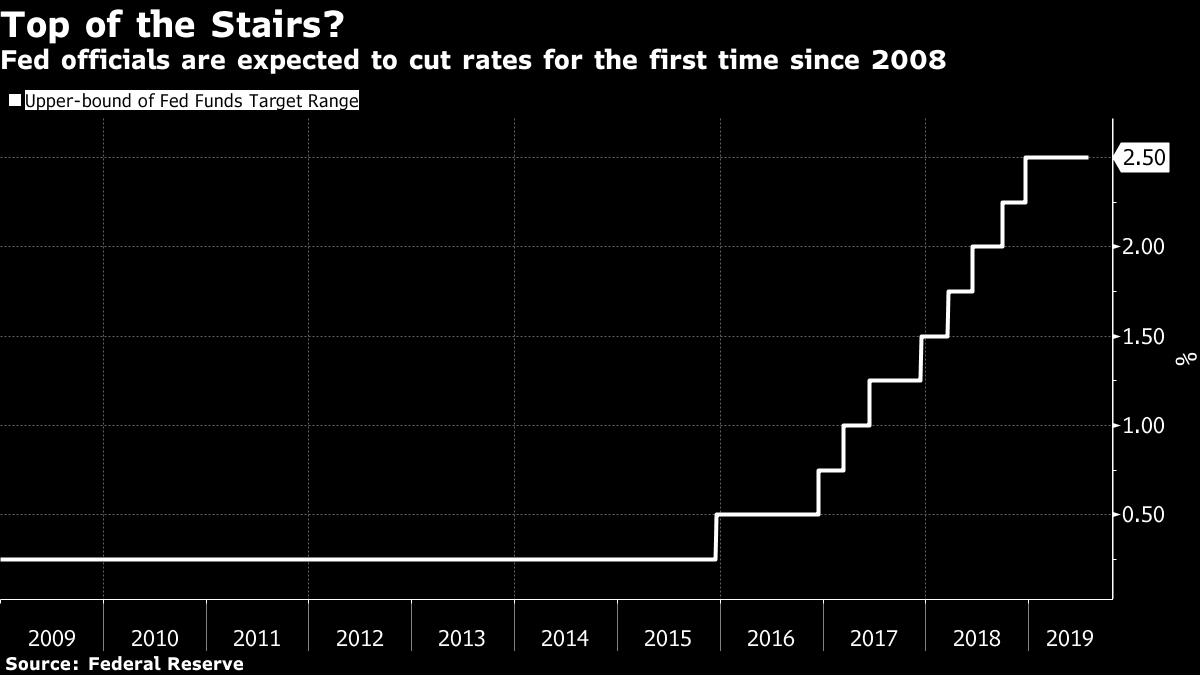 A Fed rate cut is basically baked in, trade talks between the U.S. and China are on pause again, and earnings are coming in fast. All eyes on the Fed. AgainPolicy makers at the Federal Reserve are widely expected to lower the federal funds rate by a quarter point when they complete their two-day meeting this afternoon. Barring any surprises from that announcement, attention will be trained on Chairman Jerome Powell's press conference and whether he will give any hints on future easing. That's by no means a given, considering recent U.S. data. It's a different story elsewhere: Numbers this morning showed economic growth in the euro area slowed by half in the second quarter, the latest in a string of reports flagging a deteriorating outlook which have investors mulling the chances of a return to central bank stimulus. Trade talks on pause. AgainChinese and U.S. negotiators concluded a round of 'cordial' trade talks, but there was little immediate evidence of progress being made toward ending their year-long dispute. The talks, which began with U.S. Trade Representative Robert Lighthizer and Treasury Secretary Steven Mnuchin sitting down to dinner with Chinese counterparts on Tuesday, were the first in months. Presumably it was all politeness when the teams were face-to-face, despite U.S. President Donald Trump throwing barbs at the Asian nation on Twitter from the outset. The People's Daily, mouthpiece of the Communist Party, responded to Trump on Wednesday with a commentary saying that China has no motive to "rip off" the U.S. and has never done so, and China won't make concessions against its principles on trade. Earnings roll in. AgainApple Inc.'s upbeat numbers are supporting U.S. futures this morning. The next big names to report include Fiat Chrysler Automobiles NV (at 6:59 a.m. Eastern time) and Spotify Technology. It's also a biggish day for energy companies, with numbers from Hess Corp. and Dominion Energy Corp. due. And look for MetLife Inc., Prudential Financial Inc., Qualcomm Inc. and BlackRock Capital Investment Corporation earnings after the close. Earlier in Europe, Credit Suisse Group AG brushed off much of the gloom in European bank earnings as wealthy clients added 9.5 billion Swiss francs ($9.6 billion) in new money. BNP Paribras SA reported better-than-expected results. Elsewhere, Nomura Holdings Inc. posted profits abroad for the first time in two years. Markets mixed. AgainThe MSCI Asia Pacific Index fell 0.6% overnight, while the Hang Seng index closed 1.3% lower as Hong Kong charged dozens of protesters under a colonial-era rioting law, suggesting the government is ramping up its response to the escalating unrest. In Europe, the Stoxx 600 Index traded little changed at 5:29 a.m. as mixed corporate results and economic data weighed on the regional gauge. S&P 500 futures pointed to a green open, the 10-year Treasury yield was at 2.054% and gold traded sideways. Coming up…Be on the look out for any more from the trade meetings as officials may seek to fill in details. And aside from the Fed and the glut of corporate earnings, we're due data on mortgage applications (7 a.m.), ADP employment numbers (8:15 a.m.) and the Chicago PMI data for July (9:45 a.m.). That's projected to be 51.0. after falling more than expected last month. What we've been readingThis is what's caught our eye over the last 24 hours. And finally, here's what Sid's interested in this morningWelcome to the Fed's first-ever rate cut pre-emptively spurred by concern about global activity. Maybe. Or to put it another way: the central bank lacks an obvious domestic rationale for extra stimulus given trend GDP growth, healthy consumption and the fact nothing new is happening with inflation or the labor market. The strongest argument for monetary action is to cushion a possible fall in business investment as global trade volumes weaken. But it's interesting how much emphasis is implicitly being placed on the overseas dimension, given the Fed's domestic mandate and how little we are talking about that. Obviously, the Fed always mulls the international landscape and has shifted gears in the past. But it feels different this time because there's no overseas crisis flash point. Whether lower yields will spur a weaker dollar -- the principal mechanism for dovish redress ex-U.S. -- is an open question given the outperformance of American output and risk markets. All of which suggests that an attempt to buffer trade headwinds via monetary policy will only loosen financial conditions and distort asset prices further.  Like Bloomberg's Five Things? Subscribe for unlimited access to trusted, data-based journalism in 120 countries around the world and gain expert analysis from exclusive daily newsletters, The Bloomberg Open and The Bloomberg Close. Before it's here, it's on the Bloomberg Terminal. Find out more about how the Terminal delivers information and analysis that financial professionals can't find anywhere else. Learn more. |