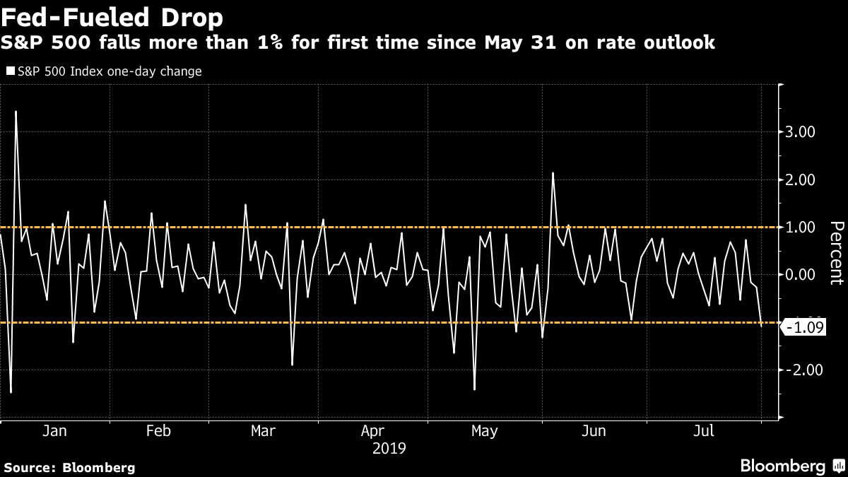 The Fed dust has settled, trade wars and/or talks to resume in September, and more corporate earnings. Trump's all (mad) about the Fed.Chairman Jerome Powell managed to give markets a thrill even though the quarter point cut he delivered was far from surprising. Powell discouraged investors from betting on a longer-term easing cycle, saying the modest cut was meant to protect the economy's expansion in a time when uncertainty around trade policy has been "more elevated than we anticipated." After wild swings as investors struggled to parse Powell's message, markets ultimately gave it the thumbs down – and President Donald Trump was also not pleased. "As usual, Powell let us down," Trump said in a tweet, having demanded a cut that is aggressive enough to fight the trade and currency battles he's waging. Look for even more Trump-ire as the dollar flirts with an eight-month high and the European Central Bank leads others looking at their own paths to easing. Trade wars – err, talks – to resume in September.Speaking of the dragging trade war, Chinese and U.S. negotiators are set to meet again in early September, this time on American soil. The talks that ended earlier this week in Shanghai may not have produced much concrete progress but Chinese state media called it at least a "pragmatic" step forward. The White House said the meetings were "constructive" and both sides agreed they broached the subject of U.S. agricultural goods (even if there were no signs of new purchases). If that doesn't inspire confidence for September meetings, consider the many other escalating disagreements between the world's two biggest economies, over Hong Kong, the South China Sea, Taiwan and Huawei Technologies Co., to name a few. Earnings paradeEarnings today are kicking off with Bombardier Inc. cutting its revenue forecast for the full year and Cigna Corp. guidance beating estimates. The next big names to report include Archer-Daniels-Midland Co., Yum! Brands, Inc. and Kellogg Co. (8 a.m. Eastern time) And after trading hours, look for results from Herbalife Nutrition Ltd., Pinterest Inc., The Chemours Co. and United States Steel Corp. Earlier, upbeat results from the likes of Societe Generale SA and Barclays Plc helped lead the European benchmark index higher. MarketsOvernight the MSCI Asia Pacific Index dropped 0.6% while Japan's Topix index eked out a 0.1% gain. In Europe, the Stoxx 600 Index was 0.5% higher at 6:08 a.m. led by financial shares after those solid bank results. S&P 500 futures pointed to a small gain at the open, the 10-year Treasury yield was at 2.042% and gold retreated. Coming up…Now the Fed is out of the way the next big thing is the July jobs report due out tomorrow, which will set the tone for the pace of activity in the second half of the year. But today isn't a total bust – we have the Bloomberg Consumer Comfort data (9:45 a.m.), as well as numbers on U.S. manufacturing and construction (10 a.m.). What we've been readingThis is what's caught our eye over the last 24 hours. And finally, here's what Lorcan's interested in this morningThere's a character called Evadne Cake who appears in several of Terry Pratchett's discworld novels. Mrs. Cake has something called precognition, meaning she can see the near future. This makes conversations with people difficult as she often answers questions just before they are asked. If she replies and the person then decides not to ask the question, she gets a very bad headache. What we saw yesterday when the Federal Reserve cut rates was the markets having a Evadne Cake headache. Yes, the FOMC did as the market expected with the rate cut, but the precognition/forward guidance demanded a clear signal of further easing. The market had been acting as if the Fed was entering an easing cycle. Jerome Powell's comment that this isn't "the beginning of a long series of cuts" led to the instant headache. The Chairman described it as a "mid-cycle adjustment," raising comparisons with Alan Greenspan's mid-1990s rate cuts in order to prolong an economic upswing. There's one major difference between now and then for markets. Back then forward guidance (precognition) wasn't really a thing - in fact the Fed only started communicating it had made a rate decision at all to the public in 1994. So under Greenspan the move was the tool. For Powell, forward guidance is the tool, and the interest rate move is just the reinforcement of that guidance. By leaving the market confused as to what's next, or at least by not doing what was expected, the Fed chair risks damaging one of the bank's most potent tools - the one where it makes markets react to the move in advance.  Like Bloomberg's Five Things? Subscribe for unlimited access to trusted, data-based journalism in 120 countries around the world and gain expert analysis from exclusive daily newsletters, The Bloomberg Open and The Bloomberg Close. Before it's here, it's on the Bloomberg Terminal. Find out more about how the Terminal delivers information and analysis that financial professionals can't find anywhere else. Learn more. |