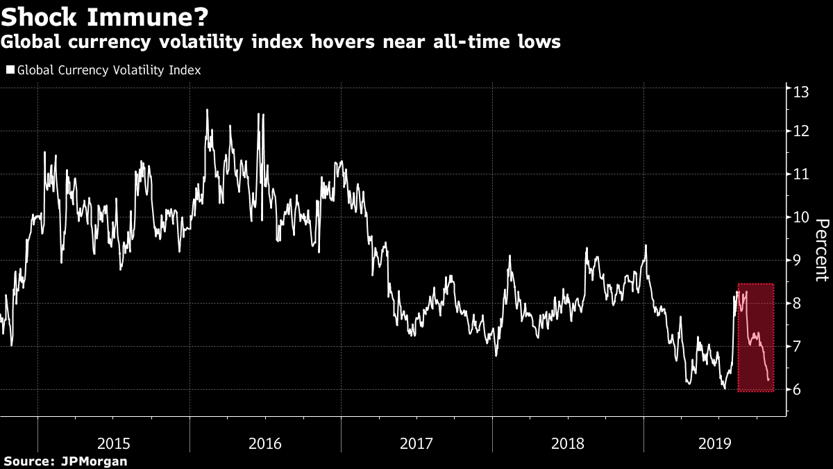| Welcome to your morning markets update, delivered every weekday before the European open. Good morning. There's a new date to mark on the calendar for U.K. politics fans, there's a potential mega-merger in the autos sector and the Federal Reserve's latest decision is coming. Here's what's moving markets. Dec. 12 Fetch your most fluorescent highlighter and put rings around Dec. 12 on the calendar, because that is when the U.K. is to have an election likely to play out as a proxy vote on Brexit. That's the same date Prime Minister Boris Johnson had proposed and which Parliament rejected a day before, but now seemingly there's a commitment that a no-deal departure is off the table. Now it will be time to start poring over polls and deciphering how to play an election campaign in markets, with some investors saying that any outcome will be better than the current status quo. But with the possibility of vote splitting and the specter of a hung Parliament, that could prove an optimistic view. Hawkish Cut Eyes have been trained on the saga in Westminster but after European markets close Wednesday, the biggest game in town for markets will arrive. The Federal Reserve is set to announce its latest policy decision and watchers expect it may hawkishly cut interest rates, with some officials likely not seeing the necessity to ease more. The policymakers will be considering an economy where consumer confidence has hit a four-month-low, where the shape of the economy is shifting away from manufacturing and a dollar that strategists think will remain strong no matter where rates go or if a recession emerges. Third-quarter U.S. GDP is due too and is expected to show a slowdown. Car Consolidation A potential mega-acquisition in the luxury goods space dominated trader chatter on Monday, but the ante has been upped. Fiat Chrysler Automobiles NV's shares in the U.S. surged following a report that it's holding talks to merge with Peugeot and Citroen parent PSA Group. The pair had held talks about a partnership earlier in the year and Fiat Chrysler held failed talks with Renault SA, PSA's French rival, so watch the European autos sector for any reaction to the new consolidation speculation. Already though, questions have been raised about whether such a deal would solve the China woes the two companies face. Earnings Extravaganza Brace yourself for an onslaught of European earnings to digest in the next two days. For Wednesday, we've already had a positive update from emerging markets-focused bank Standard Chartered Plc and a mixed report from plane maker Airbus SE, plus a beat from Swiss bank Credit Suisse Group AG and a revenue miss from Deutsche Bank AG. We'll also have auto giant Volkswagen AG, French oil major Total SA, German chemicals giant Bayer AG, U.K. high street bellwether Next Plc and drugmaker GlaxoSmithKline Plc, so steel yourself for a busy session. Coming Up… Stocks had a mixed day in Asia as the Fed decision is awaited and U.S. stocks edged back from record highs. European futures are pointing to a flat open. Plenty more to keep an eye on in a busy day. Euro-area consumer confidence, German inflation and French GDP are all coming, as are rate decisions from both Canada and Brazil, a couple of European Central Bank policymakers will give speeches and South Africa's finance minister will present a budget policy statement. What We've Been Reading This is what's caught our eye over the past 24 hours. And finally, here's what Cormac Mullen is interested in this morning The can kicking is having an effect in global foreign exchange markets. A gauge of global currency volatility has slid to near record lows as previous threats to the world economy such as the escalating U.S.-China trade war and Brexit get pushed back or delayed. A lull in the onslaught of weaker-than-expected economic data has also likely played a part. While complacency is probably too strong a word, the fall in volatility does suggest a lack of fear being priced into exchange rates at the moment. Once this week's central bank meetings are over and the early November slew of data points are out of the way, traders will have a better sense of the monetary and economic outlook for the rest of the year. But there is still an early December tariff deadline to look forward to, and now a U.K. election to get ready for around the same time. There's no guarantee that volatility will stay low till year-end. Cormac Mullen is a cross-asset reporter and editor for Bloomberg News in Tokyo. Like Bloomberg's Five Things? Subscribe for unlimited access to trusted, data-based journalism in 120 countries around the world and gain expert analysis from exclusive daily newsletters, The Bloomberg Open and The Bloomberg Close. Before it's here, it's on the Bloomberg Terminal. Find out more about how the Terminal delivers information and analysis that financial professionals can't find anywhere else. Learn more. |