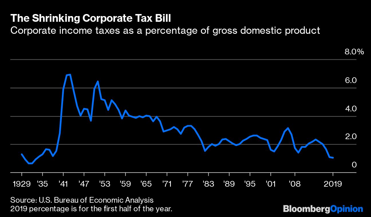 | This is Bloomberg Opinion Today, a mashup of Bloomberg Opinion's opinions. Sign up here. We're looking for your feedback to help improve this newsletter. Please follow this link to our survey, which will take only a few minutes. Today's Agenda Trump Takes Pages From China's Playbook When fighting a war, knowing your enemy is important. Becoming your enemy is a bit self-defeating. But President Donald Trump keeps displaying some of the least-desirable traits of his primary trade-war enemy, China. Yesterday, for example, we learned he wants final say over U.S. automakers' supply chains as part of his NAFTA replacement deal, USMCA. This is just the sort of government control and favoritism for which people rightly criticize China, writes Brooke Sutherland. It would raise costs for automakers and put them at risk of becoming political footballs. Amazon.com Inc. already knows how it feels to get kicked around. The company was once the favorite to win a Defense Department cloud-computing contract. But then it unexpectedly lost to Microsoft Inc., which lacks Amazon's cloud-computing chops, notes Joe Nocera. It will not shock you to learn Trump repeatedly grumbled about Amazon getting the contract, part of his tireless crusade against the company owned by Jeff Bezos, who also owns the Washington Post, which routinely makes Trump angry. Maybe you're a former bookseller or retailer or Amazon warehouse worker and find it hard to muster a tear for Bezos. But Trump routinely plays politics with Corporate America, Joe notes. He's eroding faith in the government's ability to be a fair referee and making it harder for companies to do business. He's also undermining his own argument for the trade war. Further Corporate-Woe Reading: The Fed Would Like to Stop Cutting Rates Now As widely expected, the Federal Reserve cut interest rates again today, but also suggested it was headed for the showers after cutting rates three times this year. Chairman Jerome Powell said Fed policy was in "a good place," not to be confused with The Good Place. Time will tell if it has done enough to avoid a recession, but the bond market seems content with the Fed standing pat for now, notes Brian Chappatta. Then again, merely avoiding a recession isn't enough for the Fed, argues Karl Smith. The central bank still routinely fails to meet its stated target of 2% inflation. So why doesn't it just keep cutting rates until all the slack is gone from the labor market and inflation rises? Further Interest Rate Reading: Wall Street doesn't realize low rates and low inflation aren't always the experiences of Main Street Americans. — Brian Chappatta Don't Believe the Brexit Calm It was an unusually quiet day on the Brexit front, with parliamentary wrangling giving way to praise for the retiring John Bercow. But don't let the calm fool you: Contrary to what Prime Minister Boris Johnson may believe, the upcoming election may not offer a clear way out of the Brexit impasse, warns Bloomberg's editorial board. As John Authers notes, the election only raises the level of uncertainty around Brexit, with wildly divergent outcomes still possible. Johnson sought the election, but his predecessors can tell him how easily elections can backfire. Bonus Editorial: Alberto Fernandez must resist the pull of left-wing populism and find real solutions to Argentina's economic disaster. (Mac Margolis's idea: Adopt the dollar.) India's Taking the Wrong Economic Medicine India's economic slowdown has politicians there pushing for more protectionism, but this is exactly the wrong response, warns Bloomberg's editorial board. What the country needs is more trade and to update its economy, both of which could be helped a lot by joining 15 other major Asian economies in the Regional Comprehensive Economic Partnership. In another self-defeating policy mistake, India is trying to milk its major telecom companies for cash they really don't have, while also pummeling them with low-cost competition, notes Mihir Sharma. Telecom has been a backbone of Indian industry, and the government's attacks belie its claim that it wants to make India a hotbed of entrepreneurship. Telltale Charts Maybe it's not so crazy to expect the rich and corporations to pay more in taxes, writes Justin Fox. They've done it before, and we can close loopholes that help them avoid paying. Chile may be a victim of its own success, writes Noah Smith; decades of improvement have stalled lately, disappointing raised expectations. Further Reading The NCAA's surrender on paying college players for the use of their name, image and likeness is just the first step to paying all players. And no, it won't ruin college sports. — Joe Nocera Trump's impeachment isn't just about Ukraine evidence, which is bad enough, but the whole political context; and that should worry him. — Jonathan Bernstein Trump supporters' attacks on Lt. Col. Alexander Vindman fit a long, shameful, wrongheaded tradition. — Leonid Bershidsky Peugeot SA could be a good fit with Fiat Chrysler Automobiles NV. — Chris Bryant Though Fiat may need a sweetener to make the deal a true merger of equals. — Chris Hughes TikTok owner ByteDance may want to hurry up with its IPO before the political heat on it gets too hot. — Tim Culpan Medicare for All would almost certainly cut access to health care. — Ramesh Ponnuru There's a psychological reason we're so quick to think other people are lying. — Sarah Green Carmichael ICYMI Twitter Inc. is banning political ads. Wall Street says Elizabeth Warren will kill stocks, just like Trump and Obama did. Here are New York's six best non-Peter Luger steakhouses. Kickers One-legged man makes amazing Halloween costumes. (h/t Scott Kominers) Evolution explains why our brains love to hear screams. (h/t Mike Smedley) America's sex recession could lead to an economic one. Ten horror shows to stream this Halloween. Note: Please send screams and complaints to Mark Gongloff at mgongloff1@bloomberg.n