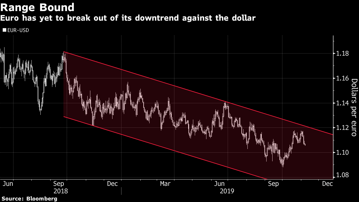 | Welcome to your morning markets update, delivered every weekday before the European open. Good morning. It looks like investors will be kept waiting over news on a trade pact, a $100 billion chipmaker beat earnings estimates and the Bank of England's policy path is clouded by the upcoming U.K. election. Here's what's moving markets. Trade Delay Market sentiment took another blow on news that President Donald Trump and Chinese President Xi Jinping may not be able to sign a partial deal until December, while two U.S. locations have been ruled out for their highly anticipated meeting. Both sides are still attempting to reach a pact that would see the U.S. dropping some tariffs on Chinese imports in exchange for Beijing resuming purchases of American farm goods. Some equity benchmarks slipped in Asia but futures in Europe are mixed, while oil held losses after snapping a three-day rally, also weighed on by indications some OPEC+ producers aren't seeking deeper output cuts. BoE May Soften Tone If there's one thing that can mess with a central bank's plans, its an election. The Bank of England may walk back its previous guidance that a smooth Brexit would entail higher interest rates as December's vote adds to an outlook already clouded by the divorce. Meanwhile, in Westminster, U.K. Prime Minister Boris Johnson was nursing another blow Wednesday as minister Alun Cairns quit after reports he knew about a former aide's role in the collapse of a rape trial. The opposition Labour party also saw the surprise resignation of remain-backing deputy leader Tom Watson. Merkel's Rogues Questions are arising over who's really in charge in Germany. For the second time in as many weeks, one of Chancellor Angela Merkel's chief cabinet members has gone rogue. Finance Minister Olaf Scholz's efforts to end years of European deadlock over a banking union was announced with fanfare Wednesday, but he hadn't cleared it with the chancellor. Speaking of Germany, the European Central Bank will pick a new board member today, with an adviser to Merkel's government touted as a likely replacement. German industrial production data later comes after better-than-expected factory numbers on Wednesday. Tech and Tiffany Chip-makers and broader technology should get a boost today after Qualcomm Inc. gave a stronger-than-predicted forecast for the current quarter, indicating that smartphone demand -- fueled by new wireless technology -- may be slowly picking up after a prolonged slump. The company's shares rose 5% in extended trading. Elsewhere, Tiffany & Co. gained on a report that said the luxury jeweler asked LVMH to improve its $14.5 billion offer. Tiffany could open its books and provide confidential due diligence with a better offer, while LVMH is engaging, Reuters reported. Coming Up… Engineering giant Siemens AG got a huge day of European earnings up and running, saying it expects a decline in market volume for some businesses next year amid the manufacturing downturn that's gathered steam in Europe, while lender Commerzbank AG cut its 2019 net income guidance. Those still to come include grocer J Sainsbury Plc and luxury carmaker Aston Martin Lagonda amid questions over its next route to raising more cash. Other data include South Africa manufacturing and Czech and Serbian rate decisions. What We've Been Reading This is what's caught our eye over the past 24 hours. And finally, here's what Cormac Mullen is interested in this morning A rebound in German factory orders is adding to signs that the euro-area economy has passed the worst of its recent troubles and getting people excited again about the euro. "We've seen the low,'' wrote Standard Chartered strategists Geoff Kendrick and Steve Englander about the single currency, recommending a long position with a $1.15 target, in a note to clients Wednesday. The euro is down almost 4% against the greenback year-to-date, yet up about 1.5% since the end of September to around the $1.1060 level. The Standard Chartered pair see a Phase 1 U.S.-China trade deal as potentially leading to a peak in the dollar, while a Brexit conclusion and the potential for fiscal expansion could both boost the euro in the medium term. Still, it's too early to confirm the European economy is out of the danger zone and there remains a lot of uncertainty over both Brexit and fiscal policy. The euro is in a multi-year downtrend against the dollar. A lot now depends on the vagaries of the trade negotiations -- and the hope that any China deal doesn't open up the door for a renewed focus on the trading relationship between the U.S. and Europe. Cormac Mullen is a cross-asset reporter and editor for Bloomberg News in Tokyo. Like Bloomberg's Five Things? Subscribe for unlimited access to trusted, data-based journalism in 120 countries around the world and gain expert analysis from exclusive daily newsletters, The Bloomberg Open and The Bloomberg Close. Before it's here, it's on the Bloomberg Terminal. Find out more about how the Terminal delivers information and analysis that financial professionals can't find anywhere else. Learn more. |