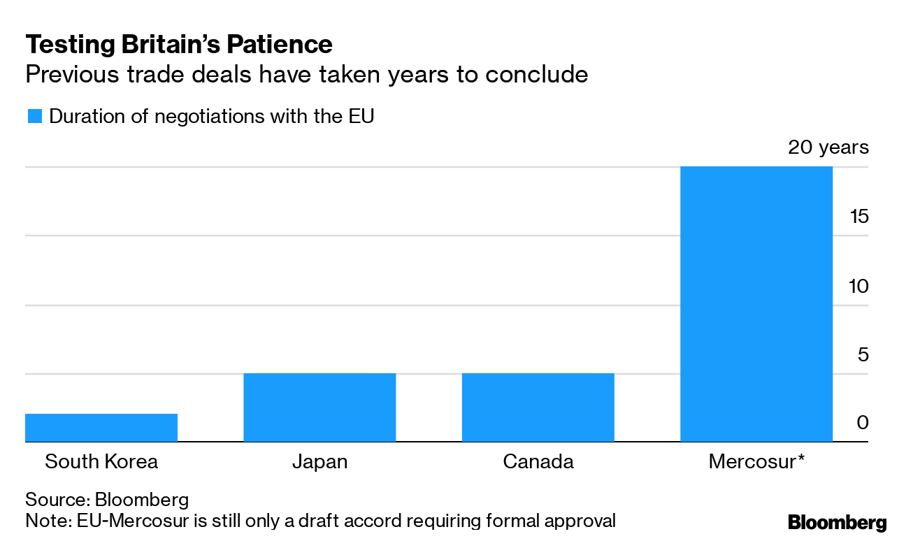 Days to General Election: 16What's Happening? However the U.K. general election plays out, a no-deal Brexit is still on the cards. The specter of a no-deal Brexit hasn't gone away. In fact, there are four ways the upcoming general election could revive the risk of an abrupt U.K. split from the European Union. Only one election outcome gives Boris Johnson a clear path to get his Brexit deal approved in the timescale he wants. - Conservative Majority: If Johnson's Tories win more than 325 seats they will form the next government. Johnson will aim to pass his Brexit deal swiftly and formally leave the EU by Jan. 31. He then has 11 months to negotiate a trade agreement with Brussels — a goal many observers say will be hard to meet. No-Deal Alarm: Dec. 31, 2020.