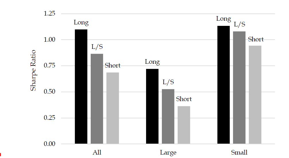 Gentlemen, Drop Your Shorts Quant investing, and indeed much of the hedge fund industry, is built on the power and freedom that come with the ability to sell short. When you short a security (borrow and then sell it, meaning you make money if the price falls and you then re-buy it), you can profit when markets go down as well as up. Hedge funds, unlike mainstream mutual funds, can sell short, and this opens exciting new strategies. In 2000 and 2001, as the dot-com bubble was bursting, equity hedge funds succeeded in making money, and many investors noticed. "Liquid alts" — hedge fund-like strategies on offer to retail investors — tend to be based on this, as is much of the emerging work in "smart beta" — tweaking well-known indexes to emphasize particular factors. Academic finance is also implicitly based on the power of shorting. The investment factors identified in the academic literature are usually expressed on a "long-short" basis. For example, the value factor (buying stocks which look cheap compared to their fundamentals) is expressed as the gap between the performance of the cheapest (long) and the most expensive (short). The same is true of momentum strategies (long stocks that have been winning, short stocks that have been losing), and low-volatility (long low-volatile stocks and short more variable ones), and so on. The factors laid out in the massive empirical work by Eugene Fama of the University of Chicago and Kenneth French of Dartmouth College are expressed on a long-short basis, and so the rest of the academic community tends to follow. Now comes an academic wrecking ball, from David Blitz, Guido Baltussen and Pim Van Vliet, a group of quants who work for the Netherlands-based fund manager Robeco. In this new paper, called "When Equity Factors Drop Their Shorts," the Robeco team breaks down the contribution to performance made by the long and short legs of equity positions — and finds that the short position is scarcely worth the bother. The article is published today, and is about to go through the academic wringer (as have other pieces by the Robeco team). For now, I will outline the main findings. Very many people have an incentive to prove them wrong, so we can expect a robust academic and professional debate over this. Arguably the central finding is contained in this chart. The researchers looked at returns on U.S. stocks from 1963 to 2018 which have already been closely researched. After testing a long strategy, a short strategy (merely betting against the worst stocks according to a factor), and a long-short strategy, risk-adjusted returns turned out better in all cases for the long-only strategy. As might be expected, though, returns were higher and the gap between the long and the short end of the trade was narrowest, in small-cap stocks, where we can assume there is less information and the markets are less efficient: To be clear about what is being measured here, the "long" is compared to a straight long position on an index, while the "short" position is compared to a short position on the relevant benchmark. Markets tend to go up over time, so the long will naturally tend to do better, but that isn't what is being measured here. Instead, we see that the "long" side of a factor (that it is very cheap, and so on) is a better predictor of outlying performance than the "short" side of that factor. Extremely expensive stocks aren't as likely to lag the market as extremely cheap stocks are to lead it. Also, the research stands up that there are diversification benefits from adding extra factors. All the strategies improve their risk-adjusted returns this way; and the advantage of the "long" over the "short" widens with extra factors. One other important finding is that while the long sides of different factors tend not to correlate with each other, the short sides do. Put more in layman's language, there are a number of different ways to spot a stock with a good chance to outperform, but stocks with a good chance to underperform look bad according to a number of different factors. Expensive stocks ("short value") also tend to be volatile ("short low-volatility"), and so on. This again suggests that there is little point in using factors to identify individual stocks to short. All of this research is on the basis of "zero friction." In other words, it assumes that it is as cheap to maintain a short position as it is to maintain a long one. In real life, this isn't true. Selling short requires paying interest to someone, and that interest will increase if the stock is a popular one among short-sellers. There is a risk that the lender will demand their stock back. And shorting requires a thick skin. Companies seldom complain about investors buying their stocks, but tend to get very vocal about being shorted. Finally, there is a risk-reward issue. The returns on a short position are capped at 100% (if the stock goes to zero), while the potential losses are infinite. So the balance is set against shorting even before starting. None of this excludes forensic short-selling by specialists. Selling short isn't just the opposite of choosing stocks to buy; to short a company with confidence requires a close examination of its books and its business confidence, and a conviction that it is fatally wounded. To be sure the strategy works, short-sellers need to be prepared to talk about their ideas a lot in public, and take a lot of flak. Some famous successes show that short-selling like this is a vital part of the market eco-system — think of Jim Chanos's attack on Enron, Bill Ackman's attack on the monoline credit insurers before 2008, or David Einhorn's attack on Lehman Brothers. But this research shows that using factors to identify short candidates the same way that we identify stocks to buy isn't a good way to deploy capital. For those who don't want to expose themselves to the overall direction of the market, it is far cheaper and easier, and no less effective,