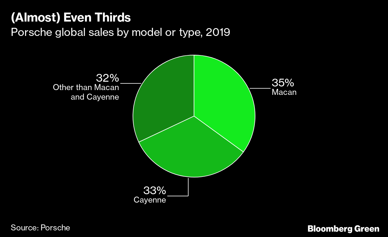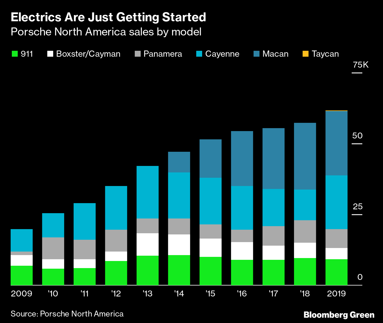 First, those German luxury sedans. Porsche AG had another year of record sales in 2019, as more than 280,000 buyers picked up its vehicles last year. Regular readers will know my enthusiasm for Porsche sales reports as an indicator for what well-heeled buyers want (mostly: SUVs). Last year, sales broke down to about one-third smaller SUVs (the Macan), one-third larger SUVs (The Cayenne), and one-third everything else (sedans, coupes, and supercars).