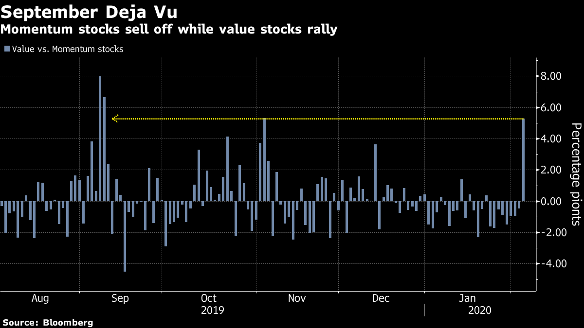 | Welcome to your morning markets update, delivered every weekday before the European open. Good morning. European shares gained for a third day, U.S. President Donald Trump avoided impeachment and there was a shock vote in Germany. Here's what's moving markets. Stocks Gain European stocks gained for a third straight day on Wednesday as fears about the coronavirus abated. Despite China's death toll of 563 people, Asia stocks rose again overnight amid hopes about containment of the illness. That allowed trade to come back into focus for investors as China said it would halve tariffs on about $75 billion of imports from the U.S. later this month. Macroeconomic data could be next on the radar for traders, with keenly watched German factory orders due later and the all-important U.S. jobs report tomorrow. Trump Acquitted A historic, bitterly partisan fight in Washington came to an end as the Senate voted to acquit President Donald Trump on charges he abused his power and obstructed Congress, making him the the third U.S. leader in history to escape removal from office. One surprise was former presidential nominee Mitt Romney breaking from the Republican party to find Trump guilty of seeking a political favor from the Ukrainian government. Meanwhile, over in Iowa, Pete Buttigieg and Bernie Sanders were in a virtual tie early Thursday as the state's Democratic Party continued to struggle releasing long-delayed results. Merkel Heir Embattled The heir apparent to Chancellor Angela Merkel is battling to recover control after her center-right Christian Democratic Union voted alongside the anti-immigrant Alternative for Germany party to put a candidate from the pro-business Free Democratic Party into power in the eastern region of Thuringia. The move provoked outrage from across the political spectrum and revealed how the euroskeptic AfD has upended German politics, gaining momentum on wide-spread discontent with Merkel's immigration policy. Here's why Merkel's party just broke a taboo. Earnings Blast Thursday means lots more earnings. We've already seen French bank Societe Generale SA pledge to boost shareholder returns while warning investors to expect muted revenue growth, while Dutch lender ING Group NV's fourth-quarter adjusted pretax profit trailed consensus. For telecoms, Nokia Oyj's earnings topped estimates and steel giant ArcelorMittal said a slowdown in demand is beginning to stabilize. Several other big-hitters are reporting from France include drug giant Sanofi, ad firm Publicis Group and oil major Total SA. Coming Up… Watch Tesla Inc. shares in New York after another wild day, but before that, European Central Bank President Christine Lagarde speaks again, having warned on the economic uncertainty of the coronavirus impact Wednesday and the Czech central bank is seen keeping its main interest rate unchanged. And a gathering of OPEC+ officials continues in Vienna as Saudi Arabia pushes for an emergency ministerial meeting and potential production cut. What We've Been Reading This is what's caught our eye over the past 24 hours. And finally, here's what Cormac Mullen is interested in this morning The headlines all say U.S. stocks rallied to a fresh record high and they are right. But underneath the surface there was a shift in market leadership that bears close examination. The S&P 500 closed up over 1% for a second consecutive day with the tech-heavy Nasdaq posting a much more modest 0.4% gain. While some of the divergence was thanks in part to an overdue slide in Tesla, it was a jump in beaten-down value shares that pushed benchmarks higher, with momentum stocks lagging. As my colleague Lu Wang pointed out, a Dow Jones gauge for a momentum portfolio that buys winners and sells losers tumbled 2.2%, while a similar index for value rallied 3%. That's the sort of performance gap we saw last September and November, when value shares staged short-lived rallies. As noted in these comments last week, global value shares have fallen to record relative lows against their growth counterparts, so perhaps were due a relative bounce. But if investors continue to switch out of high flyers and into the cheaper laggards, it could be interpreted as a lack of faith that the current rally can drive on. Cormac Mullen is a Cross-Asset reporter and editor for Bloomberg News in Tokyo. Like Bloomberg's Five Things? Subscribe for unlimited access to trusted, data-based journalism in 120 countries around the world and gain expert analysis from exclusive daily newsletters, The Bloomberg Open and The Bloomberg Close. |
