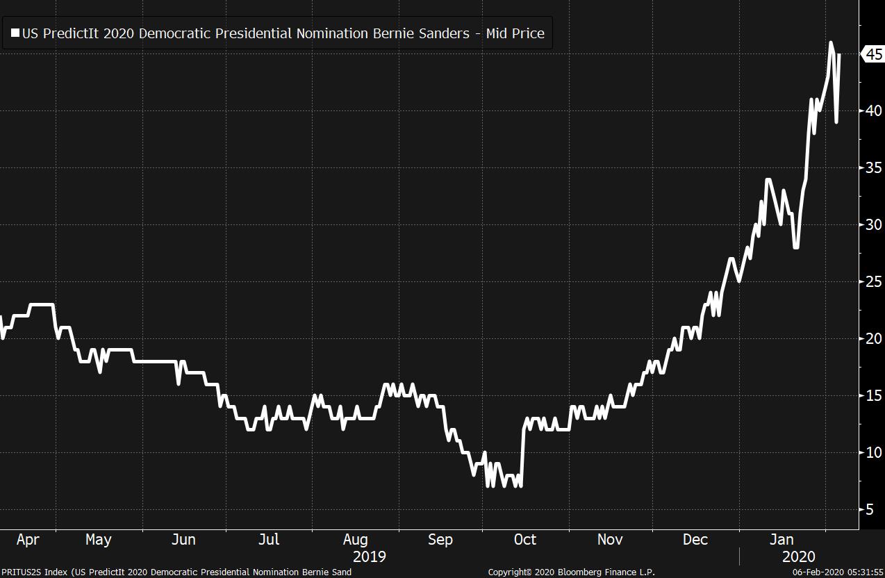 China tariff cut boosts market rally, coronavirus toll continues to rise, and OPEC+ talks move into third day. Love letterChina is showing that tariffs can go down, as well as up, with Beijing's announcement that the country will halve duties on $75 billion of imports from the U.S. on Valentine's Day. The move comes as part of the phase-one trade agreement, with Washington set to implement reductions at the same time. The announcement helped boost the rally in Asian stocks, while equities in Europe hit record highs this morning. S&P 500 futures are pointing to further gains at the open as markets seem to be shaking off coronavirus fears for now. No end in sightThat's even as the situation in China continues to worsen, with over 28,000 confirmed cases and 563 deaths from the outbreak, according to the latest figures from the country's National Health Commission. Travel restrictions to and from China are increasing, with Saudi Arabia the latest to announce bans on visits to the country. Authorities in Beijing accused those imposing the restrictions of "sowing panic" and going against WHO recommendations. Businesses are also suffering, with China's top LNG buyer declaring force majeure on contracts. Crisis talksThe technical discussions in Vienna between OPEC and its allies have been extended into a third day as Russia and Saudi Arabia remain split over the two oil-producing nations' response to the demand hit from the extended shutdown in China. Traders still expect the talks to lead to a full emergency ministerial meeting that will seek to avert a surplus in global supply. A barrel of West Texas Intermediate was trading at $51.35 by 5:45 a.m. Eastern Time. Victory lapPresident Donald Trump will make his second address to the nation this week at noon from the White House, a speech that he said will discuss "our Country's VICTORY on the impeachment hoax!" (emphasis his). The president will be emboldened by his acquittal yesterday in the Senate, where Mitt Romney was the only GOP senator to vote in favor of conviction. Meanwhile, in the continuing Iowa Democratic caucus count, Bernie Sanders has pulled level with Pete Buttigieg, with the final few results expected to be announced today. Coming up…There's one last look at the health of the U.S. jobs market ahead of tomorrow's payrolls number when weekly jobless claims are published at 8:30 a.m. Dallas Fed President Robert Kaplan and Fed Governor Randal Quarles are scheduled to speak later. In earnings today Twitter Inc., Uber Technologies Inc., T-Mobile US Inc. and Yum! Brands Inc. are among the many companies announcing results. What we've been readingThis is what's caught our eye over the last 24 hours. And finally, here's what Joe's interested in this morningA few months ago when Elizabeth Warren was flying high in the polls, various billionaires and investors were tripping over each other to declare what a disaster she would be for the stock market. Of course, a bunch of them said the same thing about Trump and Obama while they were candidates. So in general it's a probably a good idea to just ignore anyone trying to draw some connection between an electoral outcome and a market one. Lately it's been Bernie Sanders on the rise, both in the betting markets and among old-school pundits. Yet this time around there hasn't been much talk yet about how bad for markets he would be. Perhaps it's because many people still don't believe he can get the nomination, or they assume he'd be obliterated in a general election. That said, if the popular view about his prospects of winning it all were to rise significantly, it seems to safe to say that we'd suddenly start to get a raft of panicked calls from money managers about what his presidency would mean for stocks. There is a counter-argument though. Yesterday on TV we talked to Naufal Sanaullah, the Chief Macro Strategist at Eia Alpha Partners, who put forth the idea that a Sanders presidency would be good for pre-tax corporate profits. The argument, which you can see at the 36:20 mark, is essentially that larger government deficits (a reasonable assumption under Sanders) translate to higher private sector savings. Combined with a more robust social safety net that allows lower income Americans to have a financial cushion and access to credit, it's not unreasonable to think that it all translates into a robust environment for the corporate sector. This doesn't mean Sanders would be slam-dunk bullish for stocks, any more than people thought Trump would be bad for stocks. But given how terrible conventional wisdom is at this stuff, it's worth thinking about alternative arguments. And for further reading on his argument about the connection between deficits and private sector profits, this paper from the Jerome Levy Forecasting Center is a worthy read.  Like Bloomberg's Five Things? Subscribe for unlimited access to trusted, data-based journalism in 120 countries around the world and gain expert analysis from exclusive daily newsletters, The Bloomberg Open and The Bloomberg Close. |