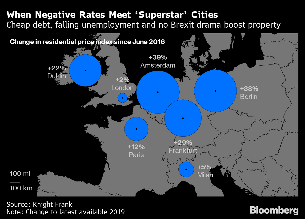| Welcome to the Brussels Edition, Bloomberg's daily briefing on what matters most in the heart of the European Union. When it comes to dealing with Turkey, the EU is walking a tightrope. The bloc's late awakening to the risks posed by the Libyan crisis and yesterday's decision to deploy warships to enforce an arms embargo are partly an attempt to contain Turkey's ever-growing assertiveness in the Mediterranean. So are the planned sanctions against Turkish nationals involved in drilling activities off the coast of Cyprus. Still, EU finance ministers today will defy their own rules and spare Turkey from a blacklist of tax havens, and the bloc is also holding off from targeting Turkish companies in its drilling sanctions. The EU is wary of totally alienating one of its biggest trading partners and endangering relations with the bulwark for refugees seeking to enter Europe. But the balance between engagement and containment is becoming ever more fragile. —Nikos Chrysoloras and Viktoria Dendrinou What's Happening Budget Spat | A meeting of EU-affairs ministers yesterday to seek a compromise on the bloc's trillion-euro budget descended into a Hobbesian state of war of all against all, as one participant described it to us. That, of course, doesn't bode well for the prospects of a deal at this week's summit. Frosty Talks | Speaking of negotiations with bleak prospects, Boris Johnson's chief Europe adviser, David Frost, had a warning for Brussels: If the EU expects the U.K. to stay aligned with European rules forever, it has failed to see the whole point of Brexit. And if it expects that this is just a negotiating stance that can change, it has another thing coming. Carbon Plan | The EU has a bold plan to tax some of the carbon produced by global competitors, which other countries might call a tariff — and a potentially illegal one at that. For the EU, the mechanism could be a way to protect its industry while prodding other regions to move ahead with similar climate action, and the cash such a carbon charge could bring would be a welcome boost to strapped EU coffers. Virus Slump | Global trade in goods will likely stay weak in coming months as disruptions from the coronavirus in China hit commerce already slowed by tariffs and uncertainty, according to the World Trade Organization. The slump comes just as the U.S. and China signed a deal forestalling any escalation in their trade war and as the U.K. and EU seek to hammer out their post-Brexit deal. In Case You Missed It Huawei Split | House Speaker Nancy Pelosi stepped up U.S. warnings about China's global telecoms ambitions, saying Huawei must be prevented from controlling the next generation of wireless networks. Her message underscores a transatlantic split: the U.S. wants an outright ban on Huawei and the EU is seeking to balance security qualms with a promise of fast, cheap 5G networks. Polish Delay | Coal-dependent Poland isn't ready to resume talks with the EU over a June deadline to commit to 2050 climate neutrality, saying it needs time to figure out its investment needs and future energy mix. The admission comes after the country endorsed the EU's carbon neutrality goal last year, but said it's not bound by the deadline because of the effort and expense required. Bulgarian Reticence | Bulgaria signaled it may delay its bid to adopt the euro amid fears the preparatory steps could jeopardize a long-standing fixed exchange rate to the common currency. The Balkan nation had planned to join ERM-2 — a mechanism that acts as the euro's ante room before full membership — by the end of April. Tech Lash | Facebook made an uncharacteristic call for internet regulation, calling on lawmakers to devise rules around harmful content, a different model for platforms' legal liability and a "new type of regulator" to oversee enforcement. The initiative came as Mark Zuckerberg visited Brussels and amid an attack against Silicon Valley firms by consumers that's been dubbed a "tech lash." Chart of the Day The euro region is home to some of the raciest property markets in the world, in terms of price growth. A mix of record-low interest rates, stable economic performance and the impact of Brexit on London investment has pushed buyers and money to continental cities, according to Bloomberg Opinion's Lionel Laurent. But the gains aren't spread equally: The current boom is highly linked to "superstar cities" that attract both financial capital and knowledge-intensive human industries. Today's Agenda All times CET. - 9 a.m. EU finance ministers meet in Brussels, to update bloc's blacklist of tax havens