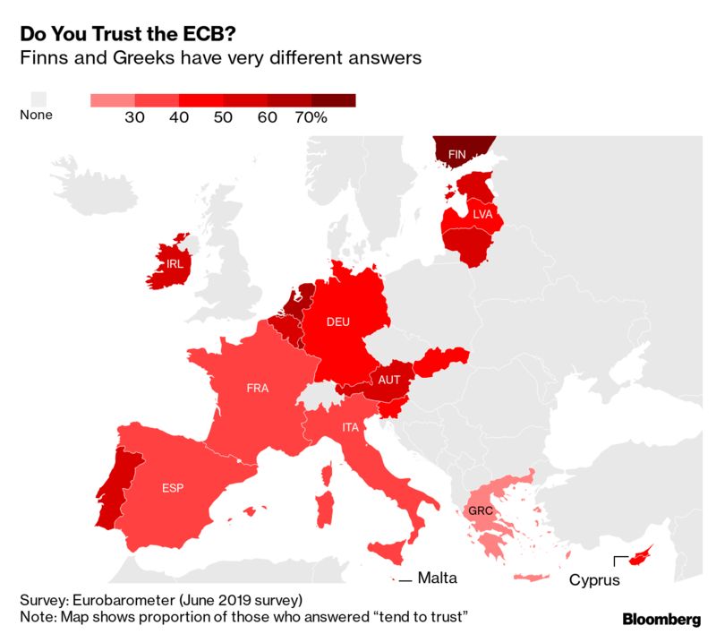 Trying Again | Michel sought to build momentum in his efforts to get France to finally back EU membership talks with North Macedonia and Albania, hosting top representatives of western Balkan countries at a dinner in Brussels last night. His efforts come as the EU is seeking to revive the membership hopes of both countries to avoid political instability in the region, and prevent a political vacuum that could play into the hands of Russia and China. IMF Warning | Kristalina Georgieva said the lack of deeper improvements in the global economic system is hindering what's already an "anemic" outlook for growth. Speaking in a Bloomberg TV interview, the IMF chief warned that the monetary policy space is shrinking and the reliance on fiscal measures as well as on structural reforms to boost growth should be stronger. United Ireland | Following an unexpected election triumph, Sinn Fein's leader wasted little time in calling for a united Ireland, demanding a referendum on the matter within five years. Nearly a century after its partition, is Ireland's wave of nationalist fervor leading inexorably to a movement to unite one of the last divided countries in Europe? Not quite, writes Dara Doyle. Read why here. Chart of the Day Bloomberg Subzero rates are in their sixth year in the euro zone, and the fatigue is especially evident in countries with strong savings cultures like Germany. Such unpopularity of negative monetary policy risks creating a political brake on the measure at a time when populism is focusing the minds of officials. Today's Agenda All times CET. - 9 a.m. EU Commission President Ursula von der Leyen, EU trade chief Phil Hogan and Council President Michel hold meetings with U.S. House Speaker Nancy Pelosi