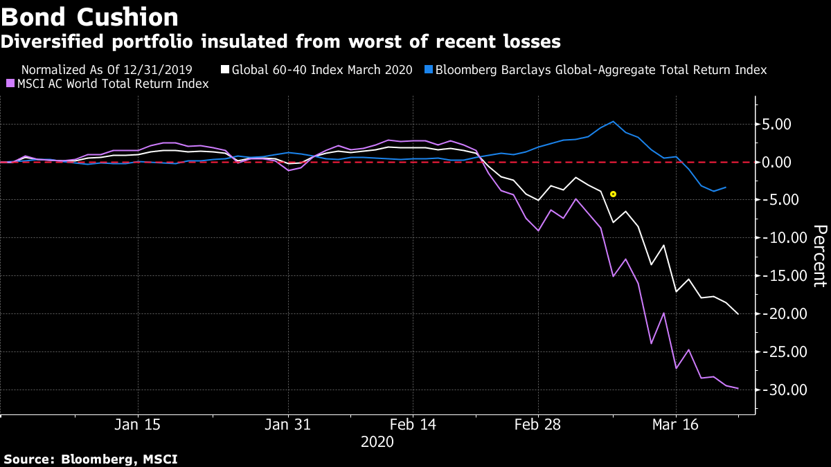| Welcome to your morning markets update, delivered every weekday before the European open. Good morning. European nations are cracking down on daily life to stem the virus's spread, a U.S. rescue package hit a stumbling block and there's more brutal forecasts of the illness's economic impact. Here's what's moving markets. Crackdown European nations are tightening restrictions on citizens in latest attempts to stem the coronavirus's spread. Germany — whose chancellor, Angela Merkel, has quarantined herself — banned gatherings of more than two people, while Spain moved to extend a state of emergency, Italy ordered a halt to domestic travel, and Greece will impose a national lockdown from 6 a.m. The U.K., deemed by some as having reacted slowly, said it could impose stricter measures after reports people were still gathering in parks and making trips to coastal towns. U.S. Package Blocked Over in the U.S., Senate Democrats blocked Majority Leader Mitch McConnell's attempt to advance a coronavirus economic rescue package Sunday after leaders in both chambers disagreed on how to spend nearly $2 trillion. The vote puts in question McConnell's plan for the Senate to pass the bill Monday. Republicans and Democrats differ on key sections of the plan, including a $500 billion chunk of the bill that could be used to help corporations, including airlines, or state and local governments. Contraction Size Europe's largest economy could be headed for its biggest output contraction in more than a decade, with Germany's finance ministry forecasting that the pandemic will see its economy shrink by at least 5% this year, according to people familiar with the figures. That compares with the current estimate of 1.1% growth. And there's been some even more brutal economic estimates for the U.S. Goldman Sachs Group Inc. expects a 24% plunge in second quarter gross domestic product, while Morgan Stanley anticipates a 30% drop. Stocks Slide European and U.S. equity futures tumbled this morning along with Asian stocks as the global death toll from the pandemic continues to rise. Contracts in Europe fell more than 6%, while S&P 500 futures hit limit down and panic buying saw the dollar surge against emerging market currencies. Traders will continue to monitor infection rates, particularly in Italy, but that's far from the only potential rebound signal to be aware of. Here's a sector by sector breakdown of how the pandemic is impacting European equities. Coming Up… Europe will get a first glimpse of how badly the coronavirus has already scarred its economy this week, starting with a reading of consumer confidence from the euro area today. We'll also get consumer confidence data from Turkey, along with an interest rate decision from Kenya. The corporate earnings schedule is light. In the U.K., regulators may request companies delay financial statements due to virus chaos. What We've Been Reading This is what's caught our eye over the past 24 hours. And finally, here's what Cormac Mullen is interested in this morning Bonds are not dead as a diversifier. Despite the sell-off in global debt last week, a traditional 60-40 equities-bonds global portfolio still outperformed an equivalent basket of stocks last week, as it has for the last five in a row amid the coronavirus-induced volatility. That means the sizeable bonds component is still acting as ballast, cushioning investors from the depths of the sell-off in stocks alone -- just as intended. A Bloomberg Barclays gauge of global bonds is down just 3% in the year through Friday, meaning a custom global 60-40 portfolio has fallen 19% in comparison to the 30% plunge in the MSCI World Index. Furthermore, Friday's collapse in benchmark Treasury yields (with declines continuing in Asia trading Monday) suggest the bond sell-off may be temporary -- in part due to forced liquidations from under pressure hedge funds. While the potential for global debt issuance to deal with the impact of the outbreak is going to be staggering, central banks are increasingly undertaking bond buying programs to provide stimulus and will want to keep a cap on yields. Long-term global diversified investors are still seeing the benefits of bonds in their portfolio, even if on occasion they fall alongside stocks. Cormac Mullen is a Cross-Asset reporter and editor for Bloomberg News in Tokyo. Like Bloomberg's Five Things? Subscribe for unlimited access to trusted, data-based journalism in 120 countries around the world and gain expert analysis from exclusive daily newsletters, The Bloomberg Open and The Bloomberg Close. |
