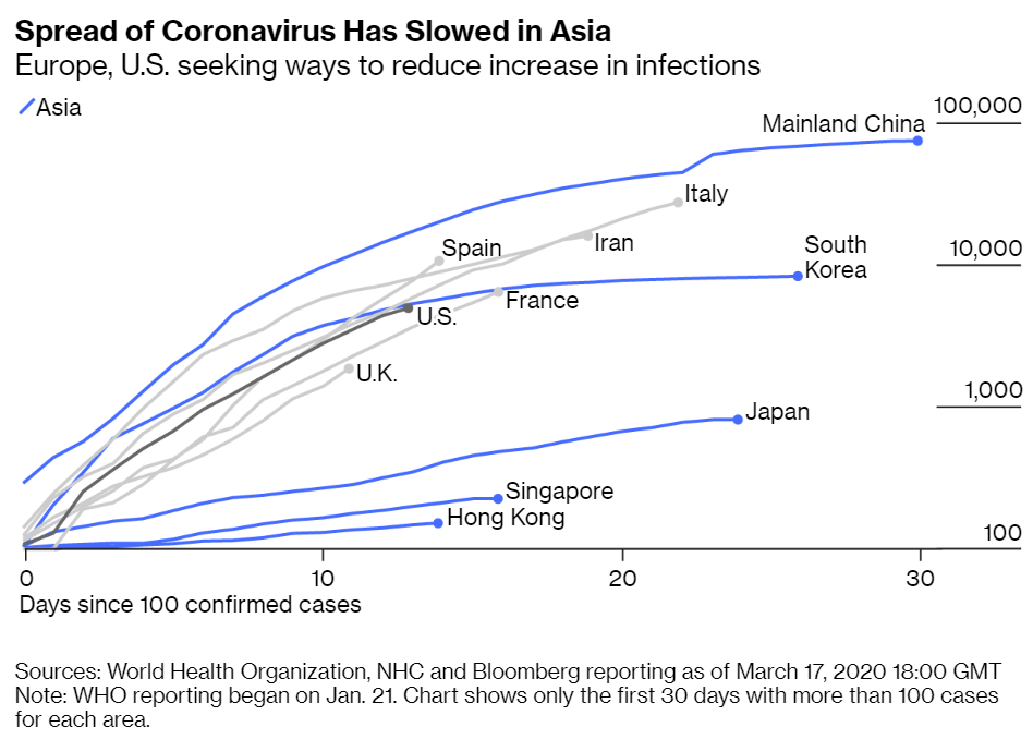 Low-income workers and women may suffer disproportionate financial damage as U.S. businesses and schools close to slow the spread of Covid-19. Washington is now scrambling to soften the economic blow. Congress and the White House pushed through a relief package that originated in the Democratic-controlled House to extend paid sick leave, food assistance and coronavirus testing. A further proposal is reportedly coming together in the Republican-controlled Senate, expected to include loans to airlines and grants for local governments and small businesses. On Thursday, the Treasury secretary called for direct payments to taxpayers of $1,000 per adult and $500 per child. A second wave of payments could follow if the economy continues to spiral. Each round is projected to cost $250 billion. The U.S. could sell 50-year bonds to help finance that. The number of infected Americans is skyrocketing, and deaths are rising. U.S. officials are responding to the crisis, potentially worsened by weeks of testing delays and downplaying by the Trump administration, with huge sums of taxpayer dollars. The question is whether that cash can buy a measure of normalcy in abnormal times. —Philip Gray Did you see this? Age is a risk factor for infection, but youth is no guarantee of immunity. Some 705 of the first 2,500 cases in the U.S. were in people 20 to 44 years old. However, Italy reports that 99% of coronavirus patients who died had a pre-existing condition. The Trump administration says it will keep trying to slash food stamps for 700,000 poor Americans, appealing a judge's injunction against such cuts during an economic and humanitarian crisis. The American Civil Liberties Union is demanding that the U.S. release immigration detainees at risk from the Covid-19 virus. American parents working from home have the world's most distracting co-workers. Former U.S. Vice President Joe Biden vowed to pick a woman as his running mate if he becomes the Democratic presidential nominee. But Greek voters are thinking even bigger: Greece's first female president just took office. We love chartsThe trajectory of Covid-19 infections in Asia could give a preview of how the pandemic will play out in Europe, the Americas and beyond. But scientists remain unsure of how the outbreak will eventually unfold. Life in a shuttered ItalyItaly, with its streets empty and hospitals full, is working through the stages of pandemic acceptance. Dwelling in denial for too long, the nation is now almost totally shut down in a desperate bid to halt the virus. Its health care system is buckling and hundreds of deaths are reported daily. From their vantage point, Italians are watching other countries make the same deadly mistakes: deny, deny, deny ... and then panic.  |
