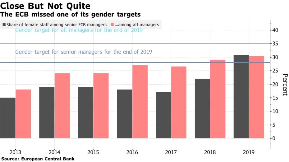 | Welcome to the Brussels Edition, Bloomberg's daily briefing on what matters most in the heart of the European Union. With the EU officially on track for its worst recession in history, finance ministers will hold yet another virtual meeting today — this time to agree on the terms of emergency credit lines from the euro-area bailout fund. But the ministers will have to wait a bit longer for the most meaningful part of the EU's response: a long-anticipated recovery fund to help economies get back on their feet. The Commission, which has the unenviable task of drafting the plan, is unlikely to unveil its proposal next week, we're told, a perilous delay as the diverging fates of the region's North and South risk undermining the integrity of the currency union. — Viktoria Dendrinou What's Happening Virus Update | EU countries continue to move toward easing restrictions as the economic pain from the fallout of the coronavirus intensifies. France will start rolling back lockdown measures, joining the likes of Germany and the Netherlands while Italy is considering speeding up an exit from its lockdown after reporting a decline in daily fatalities and a slight dip in new infections. Here's the latest. Irish Spat | A row over the U.K.'s refusal to allow the EU to open an office in Northern Ireland may look trivial. But it's a reminder that one of the thorniest issues of Brexit — how to keep the Irish border free of checkpoints — remains unresolved and could undermine the chances of a trade deal this year. ECB Foes | The men who successfully challenged the ECB's asset purchase program are readying for their next target: the bank's response to the coronavirus. Even if they go ahead, however, such a case is expected to take years and any final ruling would likely come only after the end of the pandemic. Launder Steps | The Commission said it will propose setting up a common authority to fight money laundering early next year, following a string of revelations that exposed fundamental flaws in the bloc's framework. Still, key details remain to be determined, not least on the exact role of this body and what kind of companies it should oversee. In Case You Missed It Spying Trouble | The Paris metro authority is testing CCTV software to detect whether travelers are wearing face masks, as the city seeks to end a lockdown and help prevent the virus's spread. But the move has already hit a snag, raising concerns from the government's privacy watchdog. Good Faith | Italian Prime Minister Giuseppe Conte, under fire from coalition allies and business leaders for his cautious easing of the nationwide lockdown, is at least back in favor with the Catholic church after allowing Mass and other celebrations to resume. His decision followed a rare public attack by bishops. Taking Back | Sweden has had enough of companies flouting its guidance and plans to claw back state support given to firms that paid dividends to investors. The crackdown comes after repeated pleas to show restraint went unheeded by some of Sweden's biggest companies, who argued it's a matter for boards and not politicians to decide. Trading Drugs | From the opium harvest in Afghanistan to cocaine output in Colombia, the pandemic is disrupting the illicit drug trade through increased border controls, reduced air traffic and supply shortages. The outbreak's economic fallout, however, may lead to more people getting involved in the business, a report warned. Chart of the Day The ECB reached its goal for the number of women occupying senior management positions by the end of last year, though it missed its target for all managers. The central bank's annual report yesterday showed 30.8% of senior managers were female, compared with an aim of 28%. The figure for all managers was 30.3%, falling short of the desired 35%. Today's Agenda All times CET. - 10 a.m. European University Institute holds its State of the Union Conference online, speakers include Italy's Conte, ECB's Christine Lagarde, IMF Managing Director Kristalina Georgieva, Council President Charles Michel and Economic Affairs Commissioner Paolo Gentiloni