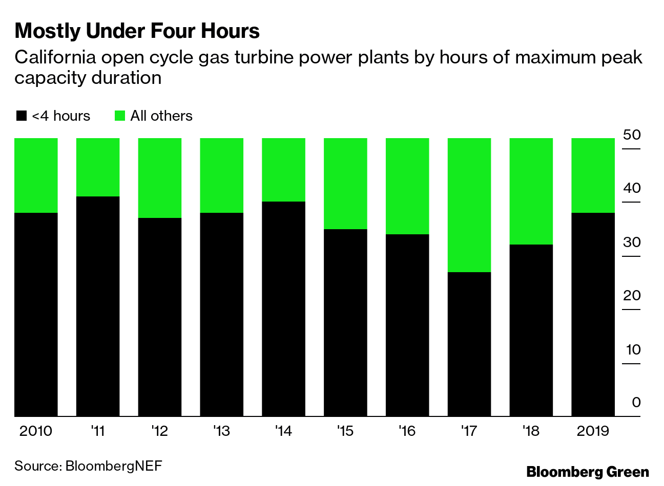 But if solar-plus-storage is highly predictable and highly reliable, that's likely to change the demand for peaker gas plants. California, for instance, has 52 peaker plants, the majority of which typically run in stretches of less than four hours. That means that solar with four hours of storage will compete with those existing peaker plants, challenging the business case for building more of them.