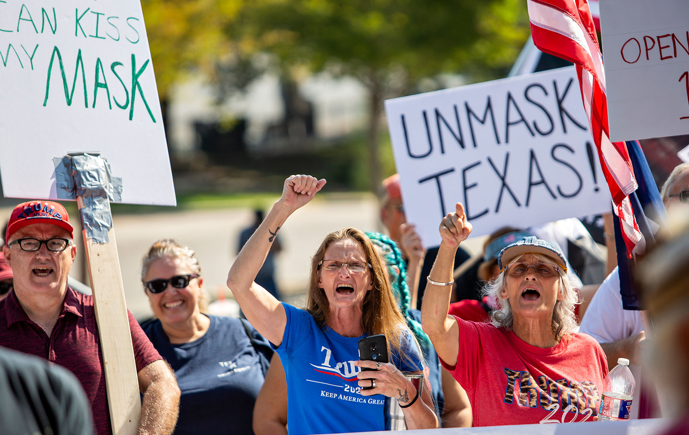 Texans protest Governor Greg Abbott's mask mandate in Austin in October.