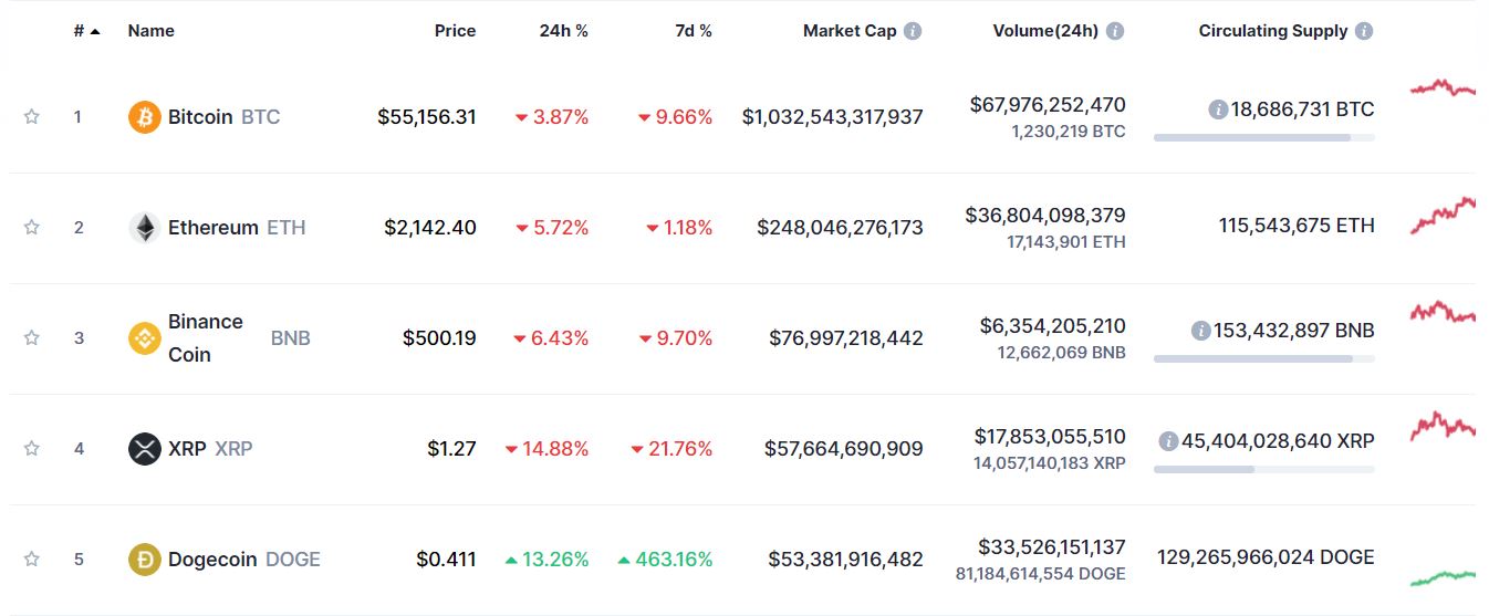 | Covid risk remains, corporate woes, and meme coin does meme thing. No-go zoneThe U.S. State Department is changing the way it issues travel advisories to reflect the prevalence of coronavirus around the world, with the move expected to result in 80% of nations being classified as no-go zones. India, where there were more than a quarter of a million new cases yesterday, is seeing more localized lockdowns as Prime Minister Narendra Modi faced growing criticism for holding large election rallies. The surge in cases in India means 2021 will probably see more global Covid fatalities than last year did. Bad news Johnson & Johnson's quarterly results today will likely be overshadowed by the continued halt of its one-shot Covid vaccine. U.S. regulators told Emergent BioSolutions Inc. to stop making the shot at a facility where 15 million doses of a key ingredient had to be discarded, potentially adding to delays for the widespread use of the vaccine. Elsewhere in messes that need cleaning, Credit Suisse Group AG said the co-heads of its prime brokerage are to leave the bank. In China, Huarong Asset Management Co. remained in the spotlight with the company's dollar bonds sinking after a report suggested regulators may be considering restructuring the debt of its offshore unit. MemeToday is 4/20, the day that has become an unofficial pot-smoking holiday. For some reason Dogecoin, the not-really-a-cryptocurrency cryptocurrency, has become associated with this not-really-a-holiday holiday. At one stage this morning Dogecoin traded at 42 cents, which was probably very exciting to anyone that gets excited about stuff like this. Joe has written something in his paragraph below if you have to know more. Markets dropMixed corporate earnings, regulatory moves and the spike in Covid cases are hurting sentiment. Overnight the MSCI Asia Pacific Index slipped 0.6% while Japan's Topix index closed 1.5% lower. In Europe the Stoxx 600 Index was 1.1% lower at 5:50 a.m. Eastern Time with every industry sector in the red. S&P 500 futures also pointed to a drop at the open, the 10-year Treasury yield was at 1.608%, oil celebrated the anniversary of negative prices by trading over $64 a barrel and gold slipped. Coming up... There is very little in the way of economic news this morning, with Canada's Home Price Index for March at 8:30 a.m., the only North American data release of note scheduled. However, it is a huge day for earnings with Johnson & Johnson, Procter & Gamble Co., Abbott Laboratories, CSX Corp., Philip Morris International Inc., Lockheed Martin Corp. and Xerox Holdings Corp. among the many, many companies reporting results. What we've been readingHere's what caught our eye over the last 24 hours. And finally, here's what Joe's interested in this morningThe crypto market has had one of its standard bouts of volatility over the last few days, but as this table from CoinMarketCap shows clearly, of the top five biggest coins, one coin really stands out.  That's right. Doge has just been in its own universe, and honestly it's really great to see because it's the perfect thing to make everyone annoyed.