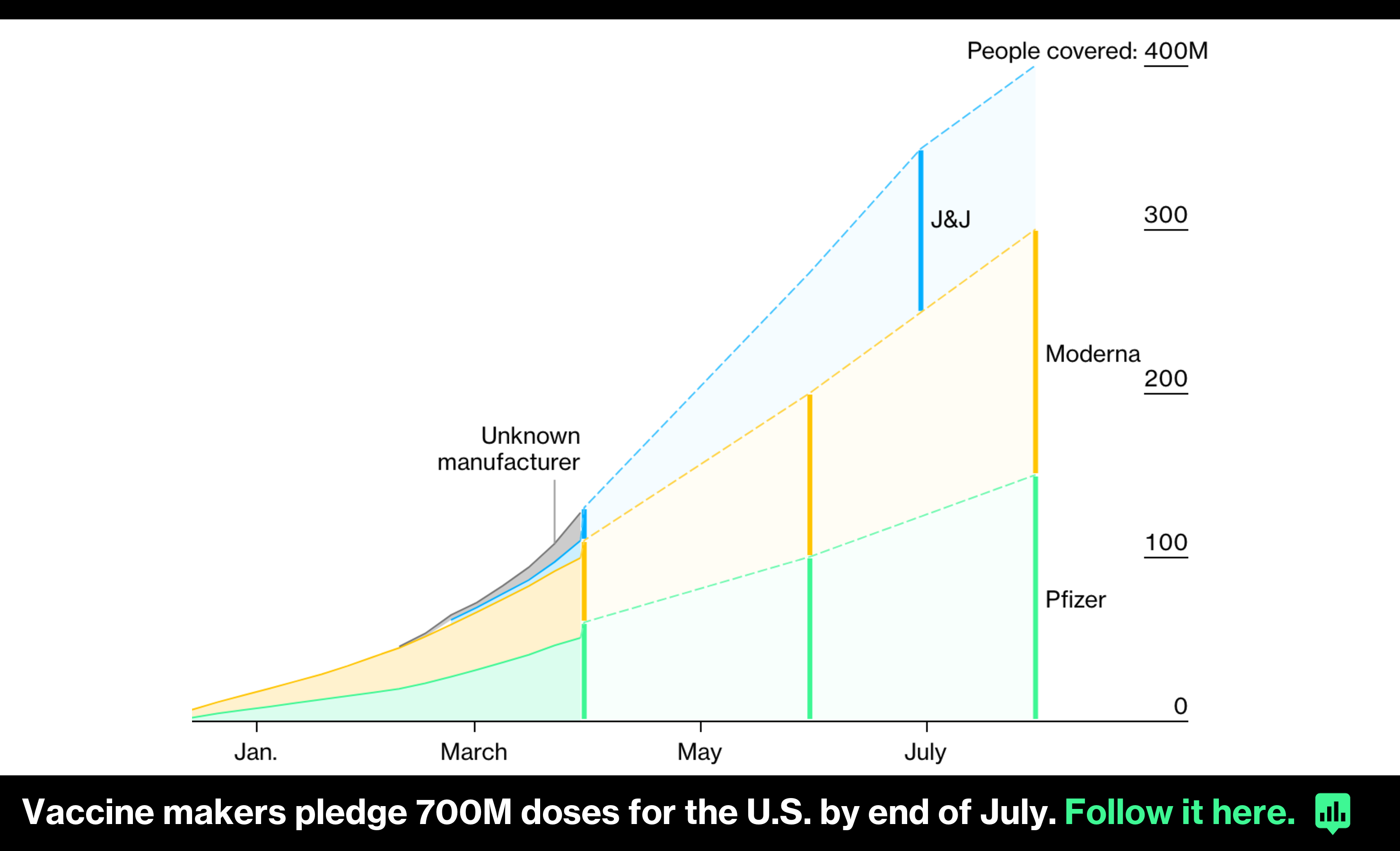As of this week, the Bloomberg Vaccine Tracker will be regularly updating how many doses pharma companies have delivered in the U.S., and following whether they've met the ambitious delivery targets they've set  enough doses to together cover 400 million people by the end of July.