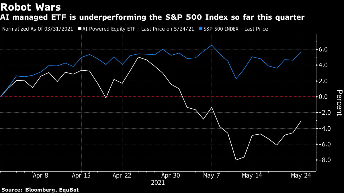 | Good morning. Belarus sanctions, oil gains, a big property merger and a broker bans cold calling. Here's what's moving markets. Summit, SanctionsA European Council summit continues in Brussels amid the backlash over what the European Union called the "hijacking" of a Ryanair jet and the arrest of dissident journalist Raman Pratasevich. Members have tasked ministers to ban overflight of EU airspace by Belarusian Airlines and prevent access to EU airports, while asking European airlines to avoid overflight of Belarus. Ministers were also asked to come up with broader measures to target sectors of the country's economy. 26-year-old Pratasevich, meanwhile, appeared in a video posted by state-owned media channels, speaking from what appeared to be a jail cell. Oil FirmerCrude held the biggest two-day gain since March as investors monitor a recovery in demand that may enable the market to accommodate fresh flows from Iran, should the nation's nuclear deal be revived. Talks between Iran and world powers will continue this week to resolve outstanding issues on the pact, which may pave the way for the removal of U.S. sanctions. Goldman Sachs Group reckons the market will likely be able to absorb the extra supply. Property MergerGerman residential property firm Vonovia agreed to acquire rival Deutsche Wohnen for about 19 billion euros ($23 billion) in the biggest-ever takeover in European real estate. The pact is set to reshape the country's property industry, bringing together the two largest residential landlords with control of more than 500,000 apartment units. Cold Calling OutCold calling by trainee brokers — traditionally a rite of passage for junior staff — is being ditched at a top broker. Merrill Lynch Wealth Management is revamping its training program for 3,000 fresh-faced brokers, including placing a ban on cold calling, and expanding accessibility to attract more diverse talent. Participants will be directed to use internal referrals or LinkedIn messages instead of cold calls. Coming Up…With stocks green across the board almost everywhere in Asia, European equity futures are pointing toward a gain after soothing comments from the Fed on inflation. More central bank officials will have their say today, with Japan's Haruhiko Kuroda, Sweden's Stefan Ingves, and European Central Bank Chief Economist Philip Lane all taking part in a conference. Elsewhere, Bitcoin trimmed gains after Elon Musk's effort to bolster the token's green credentials stoked a rally. Industrial software maker Aveva and real estate firm Shaftesbury report earnings in the U.K., while in the U.S., retailer Nordstrom and large-cap management software firm Intuit update. Finally, the U.S. said Americans should avoid traveling to Japan, less than two months before the Olympic Games are set to begin. What We've Been ReadingThis is what's caught our eye over the past 24 hours. And finally, here's what Cormac Mullen is interested in this morningA machine-guided fund which roared ahead of the market at the start of the year has suffered a setback this quarter thanks to the poor performance of its bets on tech stocks. The AI Powered Equity ETF, an exchange-traded fund driven by artificial intelligence, has lagged its benchmark S&P 500 Total Return Index by 9 percentage points since the end of March. Stock selection in the tech sector -- the fund's largest -- and health care -- where it is heavily overweight -- accounts for the bulk of the underperformance, according to calculations by Bloomberg. The fund's "manager," a quantitative model which runs 24/7 on IBM Corp.'s Watson platform, is not buying into the reflation trade narrative, according to an analysis of its latest holdings. It has outsized positions in consumer discretionary stocks and is underweight cyclical sectors such as financials, industrials and energy. Still, an international version, which invests in non-U.S. securities using the same approach, is more sympathetic to bets on a cyclical recovery. Its two biggest overweight sectors are industrials and materials -- relative to the MSCI World Index -- and it is underweight growth names such as consumer discretionary, tech and communication services. The AI Powered International Equity ETF has risen 6% so far this year, compared to a 10% gain in the MSCI World.  Cormac Mullen is a cross-asset reporter and editor for Bloomberg News in Tokyo. Like Bloomberg's Five Things? Subscribe for unlimited access to trusted, data-based journalism in 120 countries around the world and gain expert analysis from exclusive daily newsletters, The Bloomberg Open and The Bloomberg Close. |