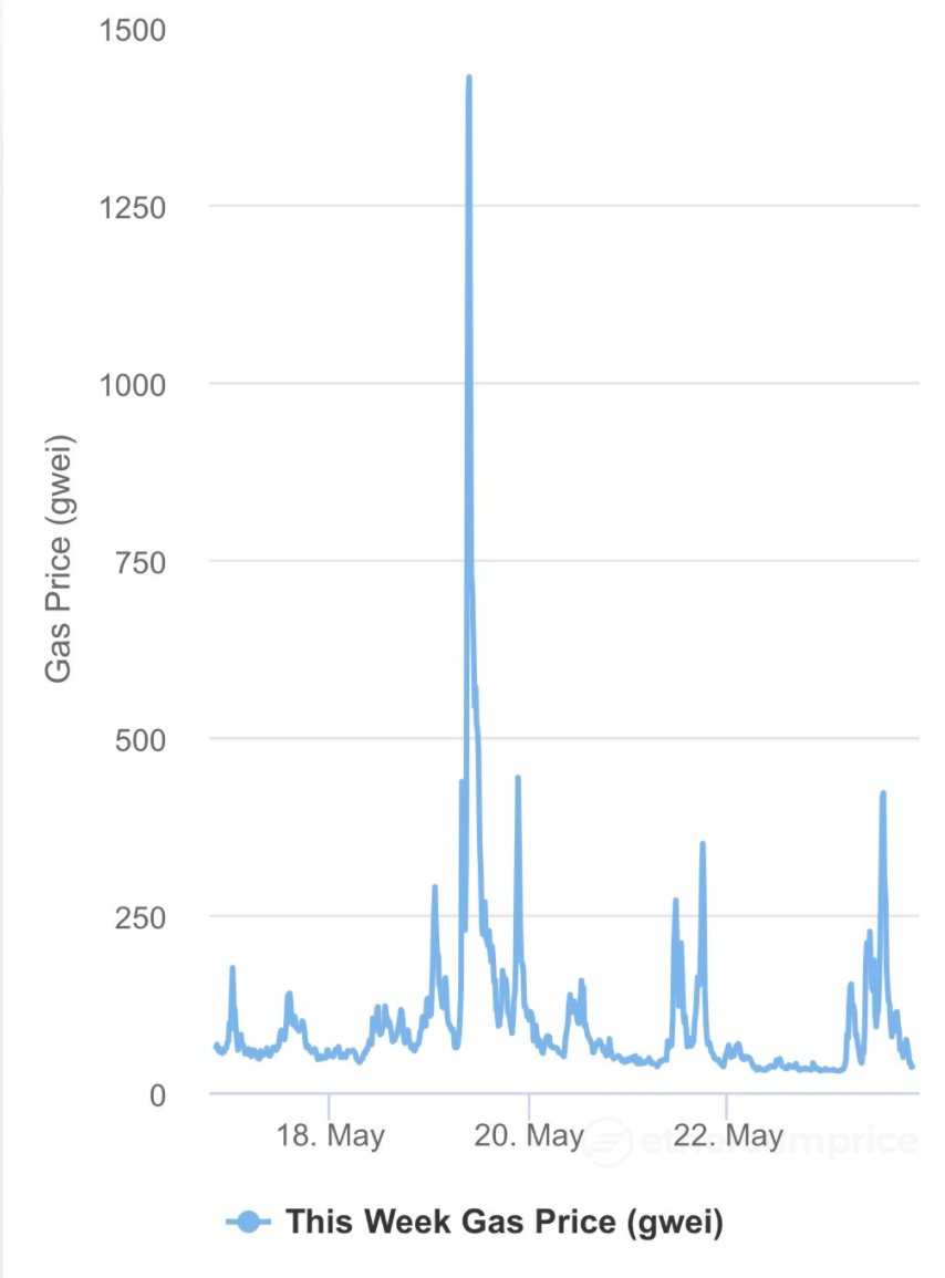 That is impressive. But while the system kept functioning, the price of transacting did go up dramatically. The following chart from ethereumprice.org, sent to me by a reader, shows the movement of "gas" prices in gweis, a denomination of the cryptocurrency ether. Its performance so far this year makes bitcoin look sedate by comparison, gaining 460% and then shedding half. Gas is the cost necessary to perform a transaction on the ethereum network:  So the network did survive the intense volatility, but the sheer amount of computational activity needed to keep everything afloat meant that the cost of using that network rose sharply. It's important that it worked, from the point of view of those trying to prove that the crypto concept is viable; even so, the fact that it required so much effort suggests that the concept needs a lot of work. Cue outraged responses… Survival TipsI missed the Eurovision song contest. My wife is happy about this. As far as I can make out, this year's winner again seems to suggest that this ludicrous celebration of everything camp and kitsch still somehow says something relevant about the society in which we live. Here is Italy's winning entry: It's called Zitti e Buoni by a band called Maneskin, and it sounds rather good to me. For a translation, try this. Eurovision also managed to reflect deepening inequality, with four countries getting zero points from the public. Britain came last, which no doubt served us right. Rather than dwell on that, here is my favorite song to get nul points at Eurovision, Norway's entry Mil Etter Mil from 1978; and my favorite ever Eurovision cover, Arcade Fire's version of Poupee de Cire, Poupee de Son. Have a good week, everyone. Like Bloomberg's Points of Return? Subscribe for unlimited access to trusted, data-based journalism in 120 countries around the world and gain expert analysis from exclusive daily newsletters, The Bloomberg Open and The Bloomberg Close. |