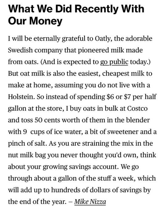 | This is Bloomberg Opinion Today, a housing development of Bloomberg Opinion's opinions. Sign up here. Today's AgendaInflation: Now Slightly More TransitoryReal estate is bonkers these days.  Take it from one New Jerseyan (New Jerseyite?): This is only barely an exaggeration. But, contra inflation-panicked markets, there is hope. High home prices are one of the worst kinds of inflation, given how much of our incomes we sacrifice on them. But in the hot housing market, there is evidence of a cooldown, writes Conor Sen. Instead of passing on exorbitant lumber costs to home buyers, builders are actually slowing down construction in the middle of a boom. Sawmills aren't rushing to expand capacity. You can't have an inflationary death spiral if everybody just goes on a buyers' strike when prices get too high. If you insist on continuing to stress about inflation, or just want a little hedge, as a treat, then you should consider Treasury Series I savings bonds, writes Brian Chappatta. These things have ridiculously high yields — close to junk bonds — and they adjust for inflation. You won't be able to buy a New Jersey house with your winnings, but you will have the financial wherewithal to make amusing memes in your spare time. And remember: The Fed may get stuff like inflation wrong, but markets do too. Remember when Greek debt was poison that was going to destroy the country's economy and all of Europe? Now it's the best-performing sovereign debt in the world, writes Matt Winkler. You just never know. Crypto Is Fine, ActuallyThis newsletter made fun of Bitcoin's terrifying bungee-jump yesterday. In imitation of the crypto market's maturity and stability, this newsletter will now lavish crypto with praise. Yes, sure, Bitcoin has just suffered yet another epic collapse. But it has done this before and always comes back eventually, writes John Authers. There's every reason to expect it will do so again. Diamond hands to the moon, et cetera. And the series of tubes through which cryptocurrencies trade did not buckle under the weight of all the volume yesterday, notes Jim Bianco. That's more than you can sometimes say for old-timey markets. In this way, wasn't Bitcoin's garbage fire at the disaster factory really kind of a win? Vaccines: More, FasterPresident Joe Biden has taken a few recent steps to get more vaccines to the world. It's not even close to being enough, writes Bloomberg's editorial board. The U.S. must stop futzing around with patent waivers and teensy donations and really just go ham on a vaccination campaign. That means ramping up production around the world, shipping out hundreds of millions of shots and overseeing them getting into people's arms, for starters. Anything less will be a moral, economic and health-care failure. Fortunately, and kind of unbelievably, there are many more Covid vaccines still in development, writes Max Nisen. Several of them could help address the global vaccine scarcity and fight the pandemic. Bonus Vaccine Reading: A lottery encouraged people to get vaccines in Ohio. Maybe lotteries will get people to do other stuff too. — Noah Smith A Cease-Fire Is Only the BeginningIsrael and Hamas have agreed to a cease-fire in their latest battle. This is welcome news, although it should not be the end of the story. Another deadly conflict is inevitable, warns Hussein Ibish, unless both sides face pressure from their allies to make real reforms. Both Israel and Hamas have too much to gain from the occasional bloodshed. For one thing, Biden must make sure the cease-fire includes steps to free Palestinians from Hamas influence, writes Eli Lake. This includes finally holding long-delayed Palestinian elections and keeping aid out of the group's hands. Telltale ChartsOatly's IPO is cashing in on the oat-milk fad, though the stock is already expensive, writes Andrea Felsted.  Oat milk is frankly kind of expensive too, compared to what Bloomberg Opinion's frugal gourmet Mike Nizza cooks up:  "The Nut Milk Bag You Never Thought You'd Own" will be the title of my band's next medieval folk album. Thanks, Mike! With an active manager with convictions like Cathie Wood, at least you know what you're getting, writes Shuli Ren. ETFs may be less volatile and risky, but they're also not always delivering what's on the tin.  Further ReadingMorgan Stanley's reshuffling shows it missed that whole "diversity" trend of the past, oh, decade or so. — Elisa Martinuzzi China hopes to turn its bad debt into good debt. This won't work. — Anjani Trivedi Mario Draghi has restored Italy's reputation and stability. It can't last, given Italy's awful politics. — Rachel Sanderson Dems should threaten to make Republican senators explain their vote against a Jan. 6 commission. — Jonathan Bernstein The wealthy shouldn't rush to switch to Roth IRAs just yet. — Alexis Leondis ICYMITreasury wants to tax big crypto transactions. Some vaccines are helping more than others. New $260 million park just dropped. KickersCement buildings can become batteries. (h/t Mike Smedley) Cicadas are weirdly photogenic. (h/t Scott Kominers) Sperm counts are plunging in the rich world. Or are they? And here for some reason is Angelina Jolie covered in bees for World Bee Day:  Notes: Please send bees and complaints to Mark Gongloff at mgongloff1@bloomberg.net. Sign up here and follow us on Twitter and Facebook. |