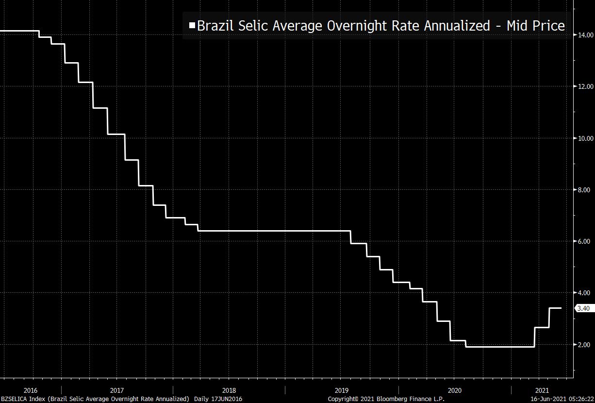 | It's Fed day, China tries to control commodity prices, and inflation worries remain. GuidanceThe Federal Reserve's Open Market Committee is all but certain to hold interest rates unchanged and announce no changes to its asset purchases when the decision is announced at 2:00 p.m. Eastern Time today. That decision will be accompanied by new economic projections, with the "dot plot" expected by some to signal a 2023 rate hike. Fed Chair Jerome Powell may emphasize the unevenness of the recovery in his press conference at 2:30 p.m. Investors are likely to be more interested in any comments on the possible start of conversations at the bank about tapering asset purchases. Control China has ordered state-owned enterprises to limit their exposure to overseas commodities markets as the country steps up its campaign to rein in speculation. Authorities also announced they will soon release zinc, copper and aluminum from the secretive national stockpile. It is the first release of reserves in years, with the announcement causing a drop in metal prices in London and Shanghai, and a selloff in mining shares in Australia. China's move comes as many parts of the commodity market that had surged recently are already starting to cool. Inflation Consumer prices in the U.K. rose 2.1% from a year earlier in May, the highest since July 2019. The faster-than-forecast pace increased speculation about the timing of Bank of England tightening. Following the high U.S. reading last week, there remains speculation on how transitory any inflation event will be. One of the main drivers of the headline number is energy prices, and with oil trading above $72 a barrel this morning, there seems to be little chance of relief on that front. Markets quietGlobal equities are relatively calm as investors wait for today's Fed decision and press conference. Overnight the MSCI Asia Pacific Index slipped 0.3% while Japan's Topix index closed little changed. In Europe the Stoxx 600 Index was 0.1% higher at 5:50 a.m. with miners and banks among the biggest losers. S&P 500 futures pointed to a quiet open, the 10-year Treasury yield was at 1.489% and gold was flat. Coming up... U.S. May housing starts and import and export prices are at 8:30 a.m. Canadian CPI for the month is also at that time. Oil inventory data is at 10:30 a.m. The Fed decision is at 2:00 p.m., with Brazil's central bank expected to hike rates again at 5:30 p.m. President Joe Biden meets Russia's Vladimir Putin in Geneva. A bipartisan group of senators is expected to release the text of their infrastructure plan. What we've been readingHere's what caught our eye over the last 24 hours. And finally, here's what Joe's interested in this morningThe Fed is going to get most of the attention today, but it's not the only big monetary authority that's going to make news. Also up today is the Central Bank of Brazil, which is expected to do a 75 basis point hike, bringing its main policy rate above 4%.  As in other countries, Brazil slashed rates during the crisis. But unlike in many other places, it's already begun an aggressive rate hike campaign in order to fight inflation. The problem is these rate hikes haven't accomplished much. There's a great piece you should read from my Bloomberg colleague Maria Eloisa Capurro about how despite the hawkish stance of BCB chief Roberto Campos Neto, inflation and inflation expectations in the country continue to rise unabated. The problem is that some of the main drivers of inflation are simply beyond the obvious control of the central bank: commodity prices are soaring around the world, and there's been a nearly once-in-a-century drought that's driving up electricity prices. (As much as 70% of Brazil's energy mix depends on hydroelectricity.) But all this just then gets back to a general debate, which applies to Brazil, the U.S., and basically everywhere else: Is turning dials up at the central bank a powerful macro stability tool? In the U.S. we have high inflation readings (at least compared to recent history) but there's a good argument to be made that they're driven by idiosyncratic factors, like the semiconductor shortage and the reopening period. As for the global commodities boom, a huge factor there has been aggressive buying of all types of goods from China (though that buying may be starting to wane). There is one obvious way that any central bank can tame inflation: Hike rates so high that you induce a depression, demand plunges and the price of everything collapses. But aside from that, yes, you can sum up a bunch of disparate categories and put them in an index called "CPI" or "PCE". But underlying all this is a bunch of unique events (a drought, Chinese commodity stockpiling, a semiconductor shortage, etc.) that are not well addressed with a blunt tool like interest rates. Joe Weisenthal is an editor at Bloomberg