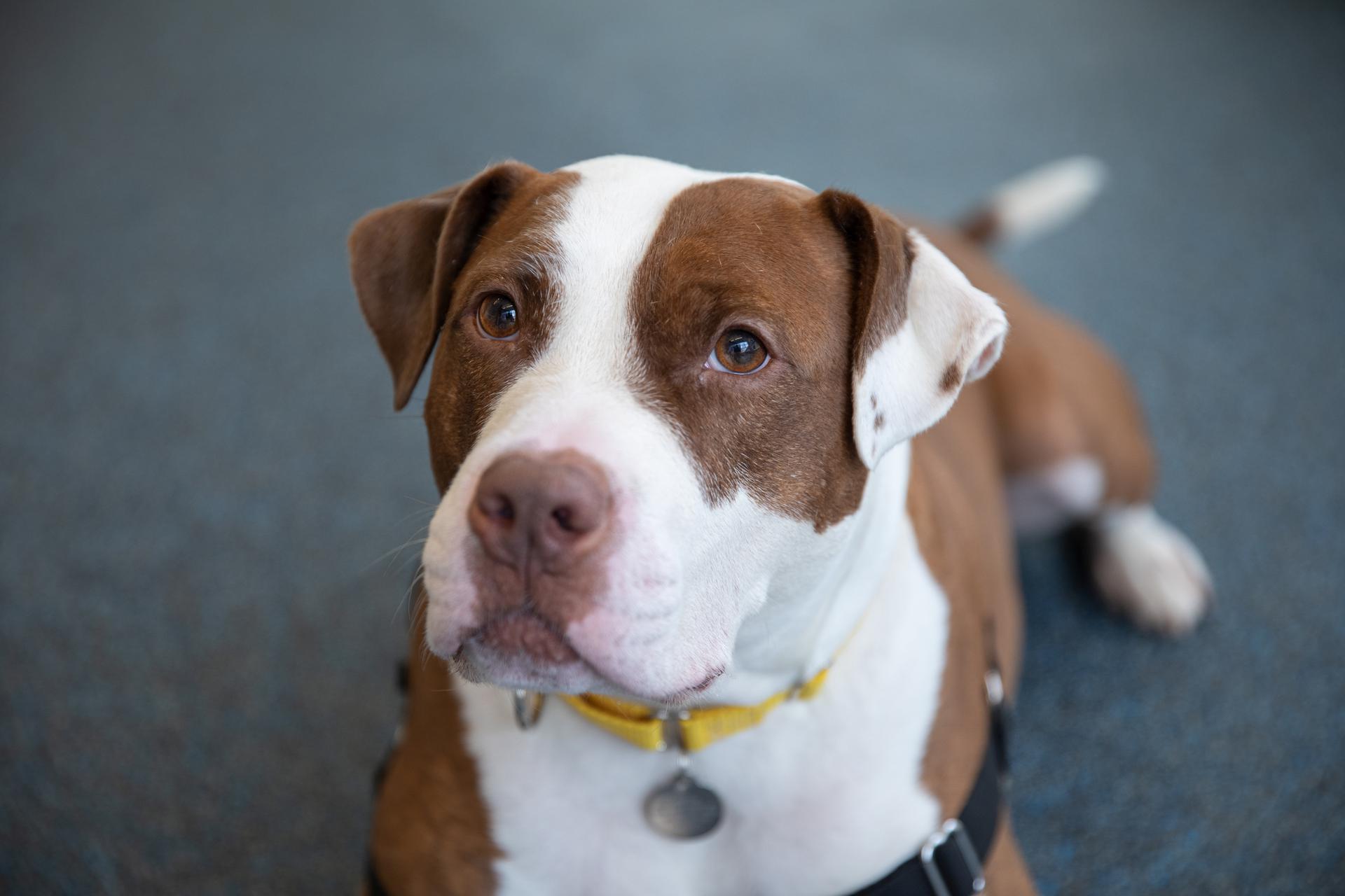 Adopt Trey, The Sweetest Of All The Boyes!!!!!!!!!!!!! Trey is the best boy! A laid-back dude, Trey is looking for a home where he can be the king of the castle. Trey has been pretty low-key in the shelter, often napping on his bed and dreaming about all the good things there are to dream about. Even when taken up to our playroom, Trey's happy to just sit on his people's laps or lay on the ground with his belly in the air! However, even though he's a mellow pup, Trey still loves getting outside and going for sniffy walks — and a big plus, we believe he may be house-trained! All in all, Trey is a sweet, calm people lover.