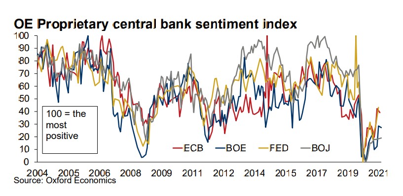 Need-to-Know Research The Fed and ECB are turning their monetary policy commentary more upbeat tones, according to a machine learning-based analysis by Oxford Economics. The two central banks are now back to around half the pre-pandemic level of optimism, but while traders of the 10-year U.S. Treasury note seems to have priced that in, euro-area debt markets haven't, Tamara Basic Vasiljev wrote in a report. The study is based on an analysis of statements from central banks using a custom-made dictionary to compare them. Of the four monitored. the Fed focuses on financial market fortunes the most. On #EconTwitterExamining U.S. inflation expectations by age group.  Read more reactions on Twitter Save the DateWatch the future unfold. Wednesday, June 30 for Bloomberg New Economy Catalyst, a global 6-hour virtual event celebrating the innovators, visionaries, scientists, policymakers, and entrepreneurs accelerating solutions to today's greatest problems. The conversations will explore what matters, what's next, and the what-ifs in climate, agriculture, biotech, digital money, e-commerce, and space — all through the imaginations and stories of these ascendant leaders. Register here. Enjoy reading the New Economy Daily? -