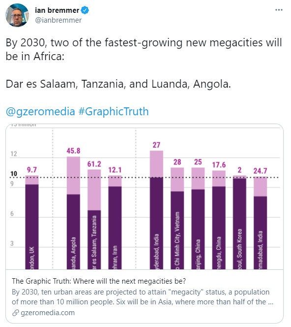 Need-to-Know ResearchThe pandemic is accelerating access to finance in emerging markets, according to economists at HSBC. Pre-coronavirus, such economies used cash more than their industrial counterparts, because of poor technology, low wages, distrust, a lack of documents, and banks being far away. "The pandemic has brought forward much of the infrastructure and programs required for fintech to thrive as governments have had to expand broadband to remote areas, enhance digital identification, and shift antiquated government systems online," HSBC's Henry Ward and James Pomeroy wrote in a report. Brazil, China, Chile and India are among those making strides, they said. On #EconTwitterLooking for the next megacity.  Read more reactions on Twitter Save the DateWatch the future unfold. Wednesday, June 30 for Bloomberg New Economy Catalyst, a global 6-hour virtual event celebrating the innovators, visionaries, scientists, policymakers, and entrepreneurs accelerating solutions to today's greatest problems. The conversations will explore what matters, what's next, and the what-ifs in climate, agriculture, biotech, digital money, e-commerce, and space — all through the imaginations and stories of these ascendant leaders. Register here. Enjoy reading the New Economy Daily? -