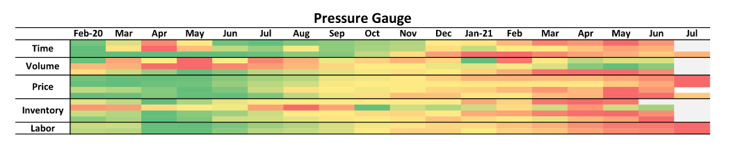 Economists at Wells Fargo are warning that supply constraints are likely to stick around, providing continued upward pressure for inflation. They released what they called a "Pressure Gauge" this week to show "snarled supply chains have yet to abate in any meaningful way."  Inventories continue to worsen and shipping costs are increasing at a double-digit pace, although car prices are set to slip.  Read more reactions on Twitter - Click here for more economic stories