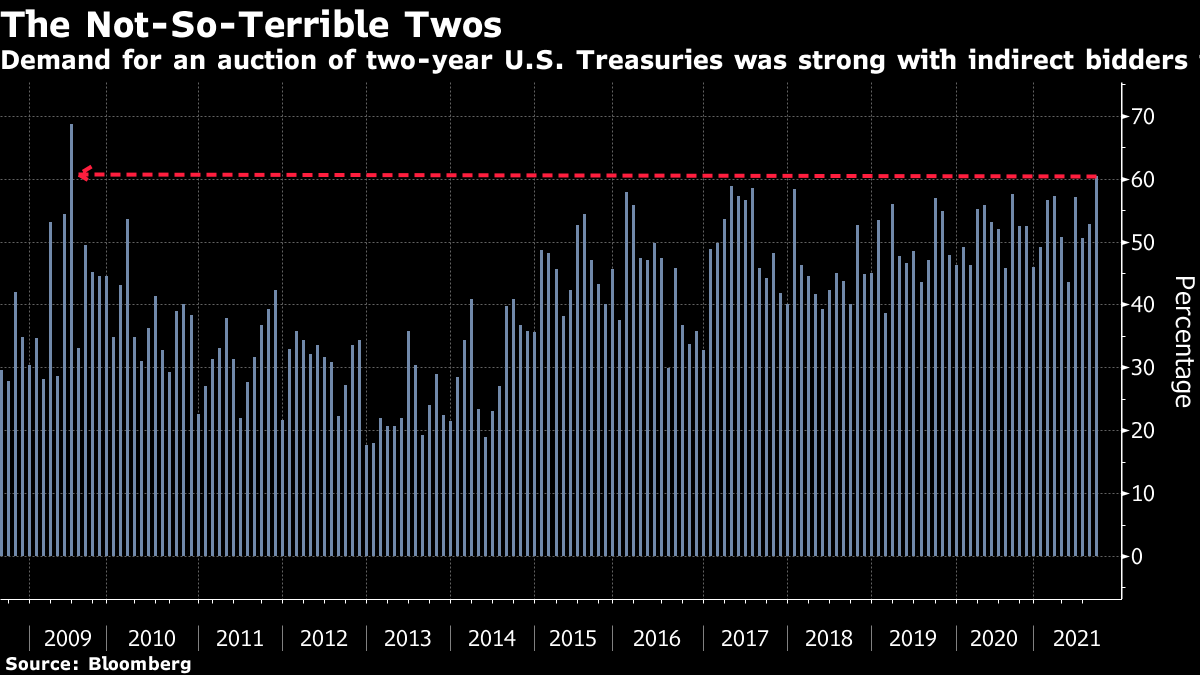 | Biden rebuffs calls to extend Afghanistan evacuation deadline — but he has a backup plan. Chinese companies listed in the U.S. must tell investors about risks they face. Things are looking good for Asian stocks, again. Here's what you need to know this morning. Biden rebuffed calls from international allies and members of Congress to keep U.S. troops in Afghanistan past his August 31 deadline, saying the U.S. is confident it will complete evacuations by then. However, he has ordered his national security team to come up with contingency plans if he determines that a delay is needed.The Biden administration has asked refugee aid organizations to prepare to receive and resettle as many as 50,000 Afghans evacuated under a stopgap program as the U.S. accelerates flights out of Kabul ahead of an end-of-August deadline. Meanwhile, China has its eye on Afghanistan's $1 trillion of minerals essential to modern technology. Asian stocks look set to track U.S. gains as strong corporate earnings and a commodity rally boost confidence in the economic recovery from the pandemic. Treasuries and the dollar declined. Futures rose in Japan, Australia and Hong Kong. U.S. contracts were steady after the S&P 500 and the Nasdaq 100 closed at record highs. In commodity markets, oil extended gains in part on China's success in stamping out virus flare-ups, which is easing some of the concerns about the impact of the delta variant on demand. The Securities and Exchange Commission will demand that the more than 250 Chinese companies trading in U.S. markets better inform investors about political and regulatory risks, expanding a dictate that it recently imposed for firms seeking initial public offerings. SEC Chair Gary Gensler said in an interview that he envisions the enhanced disclosures being included in corporations' annual reports beginning early next year. The new details would likely include information about the businesses' shell-company structures, he added. Investors need "full and fair disclosure," Gensler said. Companies affected include tech giants Alibaba and Baidu. As Fed officials gear up for the Jackson Hole symposium, their response to the pandemic is being criticized as risky by counterparts in Beijing, trying to decouple China's monetary policy from the U.S. The CCP's politburo has pledged "greater autonomy" of macroeconomic policies, signaling a willingness to add stimulus as China's recovery loses steam, even if the Fed starts tapering bond purchases. Meantime, China's central bank is far more worried that America's unprecedented stimulus since the pandemic will lead to a surge in U.S. inflation than the Fed's benign view. And the Hong Kong dollar, one of the dullest currencies in the world, is gaining attention as it's caught in the crosshairs of China's regulatory crackdown and bets on higher U.S. rates. The U.S. House adopted a $3.5 trillion budget resolution after a White House pressure campaign and assurances from Speaker Nancy Pelosi helped unite fractious Democrats to move ahead on the core of President Joe Biden's economic agenda. The 220-212 vote puts to rest, for now, an intra-party rift between progressives and moderates that threatened to derail Pelosi's strategy for shepherding through the budget framework and the separate $550 billion bipartisan infrastructure bill the House plans to pass by the end of next month. House and Senate committees are already at work trying to craft portions of the spending package that will fill in the details of the budget resolution on climate change, tax hikes on corporations and the wealthy, tuition-free community college, a Medicare expansion and more. This is what's caught our eye over the past 24 hours: It's a weird day in markets when stocks reach yet another record while an auction for short-term bonds turns into one of the best in history. The S&P 500 closed up 0.15% to hit yet another all-time high, while a $60 billion auction of two-year U.S. Treasuries was a hit with investors. Indirect bidders — a category which includes foreign central banks — took in 60.5% of the debt offered. According to Bespoke Investment Group, that's the largest share of a two-year auction since June 2009 and a proportion that's been surpassed only two other times since 2003. Yields on two-year Treasuries dropped after the auction as dealers continued to scramble for short-term debt.  All of this is happening in Jackson Hole week, when there's a chance the Federal Reserve could start to outline a path towards tapering. Perhaps demand for both short-term bonds and risk assets suggests the central bank has been able to successfully divorce the idea of "tapering" from interest rate hikes in order to avoid a repeat taper tantrum (an idea that's been floated by Dallas Fed President Robert Kaplan recently). Or perhaps markets really are just weird. |