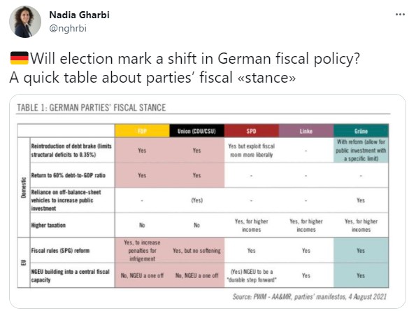 Fiscal policy is set to tighten across the world economy next year, but Citigroup economists counsel this shouldn't be a major concern. There are large spending plans in the pipeline in the U.S. and euro area, and robust tax revenues offer the chance to spend more without bloating budget deficits, they said in a report to clients on Thursday. "Political outcomes will be a key determinant of future of fiscal policy," they wrote. "Case in point is Germany where the September election will play an important role for the direction of future fiscal policy." With Germany's election less than a month away, here's a look at the political landscape on budgetary matters... Read more reactions on Twitter - Click here for more economic stories