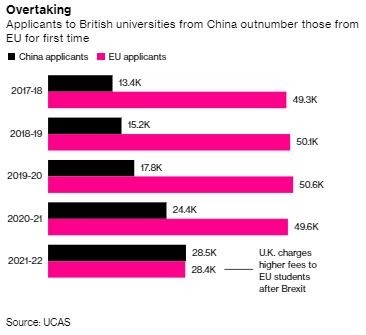 | What's happening? France accuses Britain of politicising Covid-19 travel restrictions, and the pandemic disguises the depths of the U.K.'s post-Brexit labor shortages. Britain backed down over Covid-19 restrictions on visitors from France after the government in Paris said quarantine rule were based on questionable science. French Junior Minister for EU Affairs Clement Beaune said they were "a little bit political," regrettable and discriminatory. Britain responded by allowing vaccinated visitors from France to skip a 10-day self-isolation mandate. It also eased rules for people entering England from India, Bahrain and travel hubs such as the United Arab Emirates. Covid-19 is disguising one of Britain's biggest challenges post-Brexit. Companies across key parts of the economy just can't find enough people. Hundreds of thousands of individuals are being forced to self-isolate, worsening labor shortages caused by Britain's post-Brexit points system for hiring non-U.K. nationals. "A lot of people left because of Covid," said Jonathan Portes, professor of economics and public policy at King's College London. "But a lot of them may not come back because of Brexit." Prime Minister Boris Johnson defended the "vital work" of the Royal National Lifeboat Institution rescuing migrants — including young children — after former U.K. Independence Party leader Nigel Farage described it as providing a "taxi service for illegal trafficking gangs." The U.K. Parliament is debating new legislation designed to toughen penalties on people smugglers sending migrants across the English Channel.  A group of people thought to be migrants crossing from France come ashore from the local lifeboat at Dungeness in Kent, U.K. Photographer: Gareth Fuller - PA Images The U.K. and New Zealand are "closing in" on a trade deal that would go beyond the rollover agreement struck when Britain left the European Union, International Trade Secretary Liz Truss told the Daily Express. Critics point to the relatively small expected boost to GDP compared to the U.K.'s former trading relationship with the EU. It's all part of a plan for Britain to reach beyond its old "baseline alliances" in the West because the "tectonic geopolitical plates have shifted," according to a Telegraph interview with Foreign Secretary Dominic Raab. — Lizzy Burden We aim to keep you up to date on how the U.K. navigates the world after Brexit. Got tips or feedback? Email us at beyondbrexit@bloomberg.net  Brexit's impact on U.K. universities was laid bare when the number of Chinese applicants outstripped the total number of would-be students from the EU for the first time, according to data from admissions service UCAS. Still, it isn't a financial concern as international students' fees are higher than those paid by domestic students. You can follow us @Brexit on Twitter, and listen to Bloomberg Westminster every weekday. Share Beyond Brexit: Colleagues, friends and family can sign up here. For full EU coverage, try the Brussels Edition. You can find all of our newsletters here, but here are some we think you'd particularly enjoy: Bloomberg is also tracking the progress of coronavirus vaccines and mapping the pandemic. Sign up here for our Coronavirus Daily newsletter and here for our podcast. Subscribe to Bloomberg.com for unlimited access to trusted, data-driven journalism and expert analysis. |