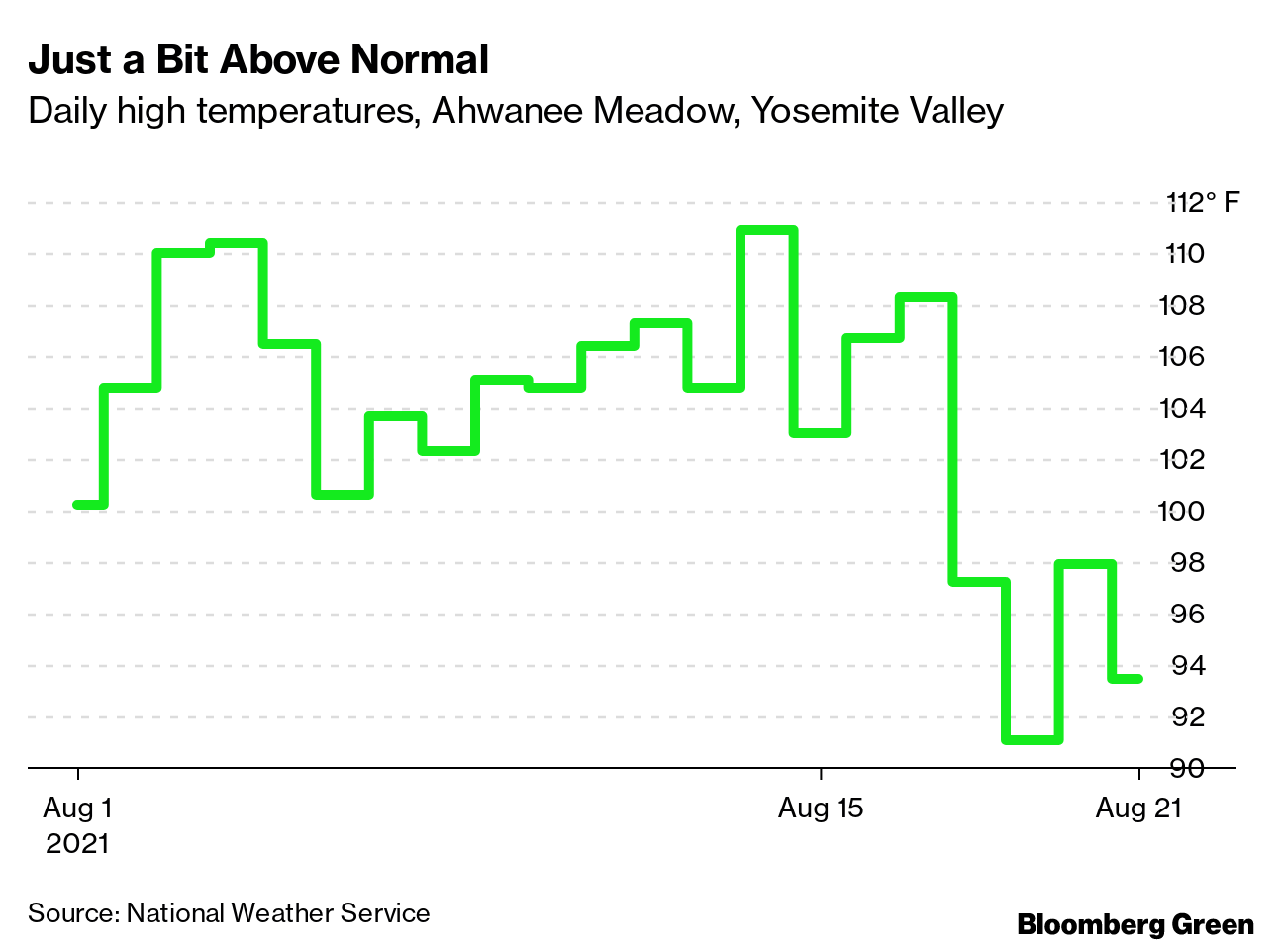 For instance: The 1991-2020 average August temperature in Yosemite Valley is a warm-but-manageable 89º Fahrenheit (jokes about dry heat aside, it is indeed very low in humidity). During my family's visit, the high peaked above 106ºF. At no point in the first three weeks of August did daytime temperatures fail to exceed the average.