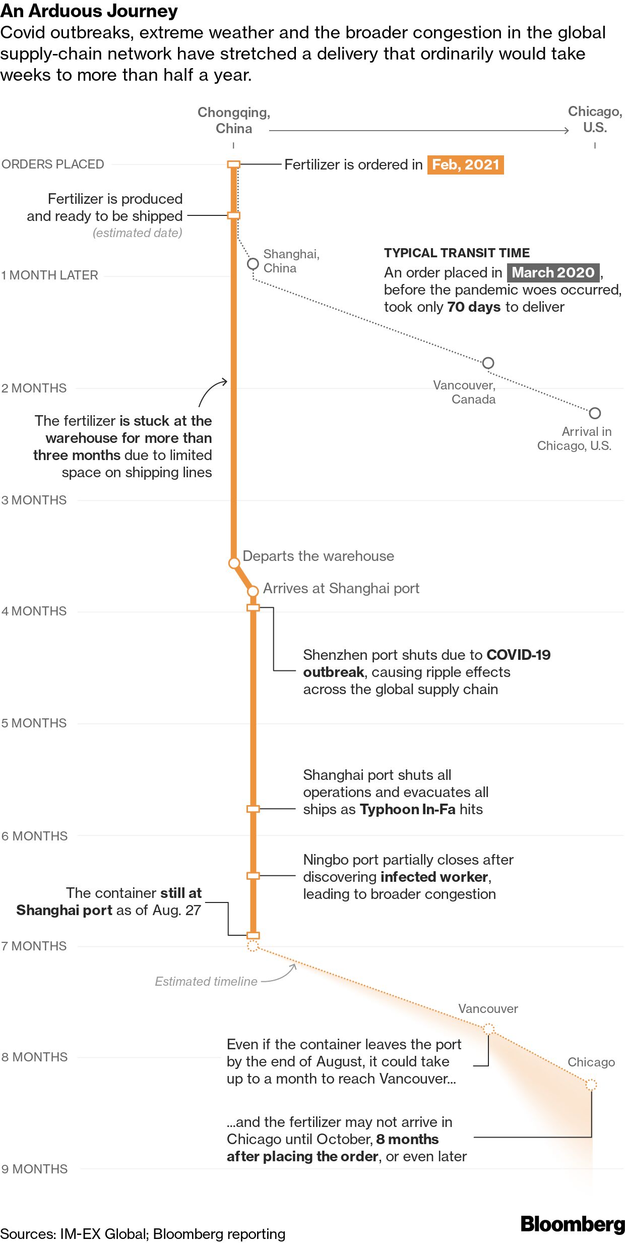- Supply squeeze | Bloomberg's Ann Koh traces the journey of a container of fertilizer sitting in Shanghai, waiting for a ride to the U.S.
