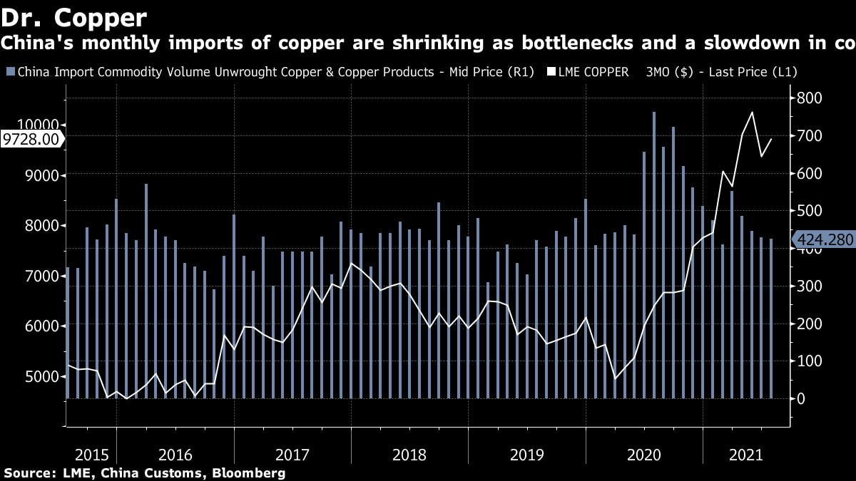 | Xi Jinping pilots his "common prosperity" program in Alibaba's home province. Chinese hedge funds are offering the best graduates big six-figure salaries. Business travel as we know it may be gone, forever. Here's what you need to know this morning. President Xi Jinping is testing "common prosperity" policies in Alibaba's home province. The Zhejiang plan suggests Beijing wants to raise incomes through private sector investment in poorer areas, and to encourage rural residents to start their own businesses. If successful the pilot could be rolled out nationally. Meanwhile, Xi Jinping chaired a high-level meeting that "reviewed and approved" measures to fight monopolies, battle pollution and shore up strategic reserves — and much more; China plans to seriously tighten oversight of e-commerce companies like Alibaba and Pinduoduo; and Evergrande warned that it risks defaulting on borrowings if its all-out effort to raise cash falls short Asian stocks look set to dip as traders evaluate economic risks from the delta virus strain and the prospect of a reduction in pandemic-era central bank stimulus support. Futures for Japan, Australia and Hong Kong all fell. U.S. stocks edged back from all-time highs amid some mixed data, including a drop in consumer confidence to a six-month low and a record jump in home prices. Treasury yields climbed following losses in European sovereign bonds. The dollar was steady. President Joe Biden defended the U.S. pullout from Afghanistan as concerns over the country's fate and the impact from those fleeing the Taliban mount. The president praised the evacuation of 120,000 people and rejected criticism that the exit was mishandled. Elsewhere, UN Secretary-General Antonio Guterres called on countries to provide rapid aid, noting that almost half of the Afghan population — 18 million people — need assistance to survive; and EU ministers vowed to help Afghanistan's neighbors prevent "uncontrolled large-scale illegal migration movements." Here's why the withdrawal may prove to be a bigger problem for Europe than for the U.S. Chinese hedge funds are offering elite new graduates salaries of up to $300,000 — triple the $100,000 sticker price of Wall Street. Graduates are in particular demand at funds which use computer models to trade, which have been lifted by inflows from rich individuals in the world's second-biggest economy. The higher wages are in line with a broader global trend that goes beyond hedge funds, as business at financial firms is booming. In the span of a few months, entry-level salaries at top investment banks have quickly shot up into six figures, even before bonuses. Business travel as we've known it is a thing of the past, with companies around the world signaling that new communications tools are making travel less of a necessity — and saving a pile of cash in the process. A Bloomberg survey of 45 large businesses in the U.S., Europe and Asia shows that 84% plan to spend less on travel after the Covid-19 pandemic. The ease and efficiency of virtual software, cost savings and lower carbon emissions were the primary reasons cited for the cutbacks. Spending on corporate trips could slide as low as $1.24 trillion by 2024, from a pre-pandemic peak in 2019 of $1.43 trillion. If you are planning a trip, here's where you can go right now and which countries are still sealed off. This is what's caught our eye over the past 24 hours: Copper is often thought to reflect the health of the world economy, earning it the moniker of "Dr Copper." So it's worth asking just what the metal is saying about the impact of logistics snarls right now. Citigroup's China Copper End-Use Tracker continues to show demand for the metal slowing. Notably, copper used for "cooling and air-con" has been a weak spot for three months now, falling 18.1% year-on-year in July. That's its biggest drop since early 2020, when a swathe of the Chinese economy was shut down to deal with Covid.  What gives? Like many appliances, refrigerators and air-conditioners appear to have been hit by transport snarls and other shortages, so much so that we can see it reflected in demand for copper — tubes of which are key components in their cooling systems. As Citi analysts put it: "Freight bottlenecks have hit these sectors disproportionately hard." In other words, Dr Copper is diagnosing the impact of supply shortages and shipping congestion in the world's second-biggest economy. It's a good reminder that the longer these issues go on, the more snarled global supply chains get and the greater potential there is for a bullwhip effect to come into play. - You can follow Tracy Alloway on Twitter at @tracyalloway.