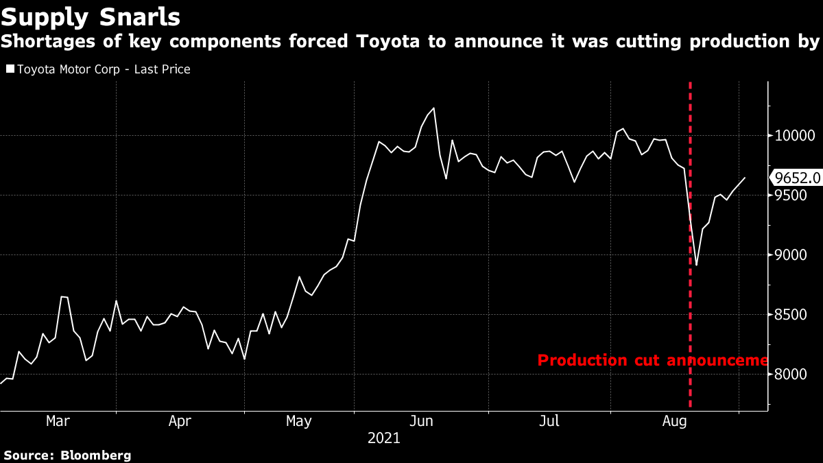 | Chinese companies are rushing to embrace Xi's "common prosperity" push. Many Covid survivors are suffering painless kidney damage. The world's most toxic air could shorten the lives of 480 million people. Here's what you need to know this morning. Scores of listed Chinese companies have rushed to embrace President Xi Jinping's "common prosperity" drive in earnings reports. At least 73 companies, including China's largest insurer Ping An Insurance, Meituan and Bank of China, used the slogan in statements filed to the Hong Kong, Shanghai and Shenzhen stock exchanges in recent weeks. While that accounted for less than 2% of the more than 4,000 filings surveyed by Bloomberg News, it featured some of the country's most-influential firms. Check out our Storythread for all the latest news on how Xi plans to redistribute the wealth. Meanwhile, Evergrande's overall liabilities rose to a near-record 1.97 trillion yuan ($305 billion), thanks mainly to swelling bills to suppliers. Kidney damage is the latest ailment to be identified afflicting a large swath of Covid-19 survivors. Painless, silent injury to the blood-filtering organ can occur among people who recover from the coronavirus at home, and escalates with the severity of Covid, according to a new study. A separate study found almost a third of children aged 11 to 17 experience persistent coronavirus symptoms, such as fatigue and shortness of breath, three months after diagnosis, suggesting long Covid afflicts the young. In other virus news a Pfizer booster shot does provide added protection against the coronavirus, according to data from Israel; Moderna is seeking clearance to give Americans booster shots; and the unwavering spread of delta has seen Southeast Asia become a choke point for the world's top carmaker. Asian stocks look set for a steady open after large U.S. technology shares climbed in a defensive tilt to the Wall Street rally. The dollar slipped to about a three-week low. Futures climbed in Japan and Hong Kong, but fell in Australia. The tech-heavy Nasdaq 100 edged up to a record while the S&P 500 was little changed amid mixed data suggesting a slower labor market recovery. Benchmark U.S. 10-year Treasury yields retreated below 1.30%. Traders are awaiting key U.S. jobs data Friday for more clues on the economic outlook and the likely timeline for a reduction in Federal Reserve pandemic-era stimulus. The world's worst air pollution could shorten the lives of 480 million people — more than the entire U.S. population — by as much as 8 1/2 years across northern India. A study found the entire South Asian nation of 1.3 billion is currently breathing air that exceeds the World Health Organization's guidelines on annual average particulate pollution levels. When measured in life expectancy, ambient particulate pollution is more dangerous than other health risks, including cigarette smoking, unsafe water, malaria, and conflict and terrorism. Meanwhile, in London eight women used hammers and chisels to smash windows at JPMorgan, to protest against organizations that support fossil fuels. And here's why the next few weeks are critical for global climate diplomacy. China's so-called ghost cities became the subject of Western media fascination a decade ago. Now these vast urban districts that once stood vacant are gaining residents and businesses — ghosts no more. In 1978 just 18% of China's population lived in cities; by last year that figure had reached 64%. The country now has at least 10 "megacities" with more than 10 million residents each, and more than one-tenth of the world's population resides in Chinese cities. In other city news, China should guard against the risk of falling property prices and a potential crisis if home values start dropping below mortgages, a prominent state-linked economist warned. And here's why Chinese cities are unprepared for climate disasters. This is what's caught our eye over the past 24 hours: One Covid case in a factory near Hanoi was enough to cause massive problems for Toyota, the world's biggest carmaker and the embodiment of "just-in-time" production. The company relies on suppliers in Vietnam to make many of its cars' components, including the wire harnesses which connect various parts. As Bloomberg reports, disruptions at the Hanoi factory combined with outbreaks in Malaysia that knocked semiconductor production, ended up causing a cascade effect that was big enough to force Toyota to announce last month that it was cutting production by a shocking 40%. The just-in-time model is supposed to maximize corporate efficiency by having companies buy components right before they're actually needed to make things. One way of thinking about it is like a kitchen. You can either have a fully-stocked kitchen, with an inventory that includes all of the ingredients you might possibly need to satisfy food orders for a while, or you can go out and purchase ingredients as each order comes in. The latter method will save you lots of money, but it does leave you exposed to the possibility of failing to fulfil orders if you can't quickly find what you need.  The lean manufacturing ethos of just-in-time supply chains was pioneered by companies like Toyota in the 1970s (so much so that it's sometimes referred to as the Toyota Production System, or TPS). But the model boomed in popularity in the 1980s, when maximizing shareholder value was all the rage. Peter Atwater, president of Financial Insyghts, points out the similarities with securitization— another process that has its roots in the 1980s ethos of minimizing capital use as much as possible in order to eke out every ounce of value available from one's balance sheet. But the global pandemic has challenged the model and "today, in response to shortages, businesses and even governments are shifting to what I call a 'just-in-case' business model. They are stockpiling critical supplies, onshoring previously outsourced production and boosting inventories 