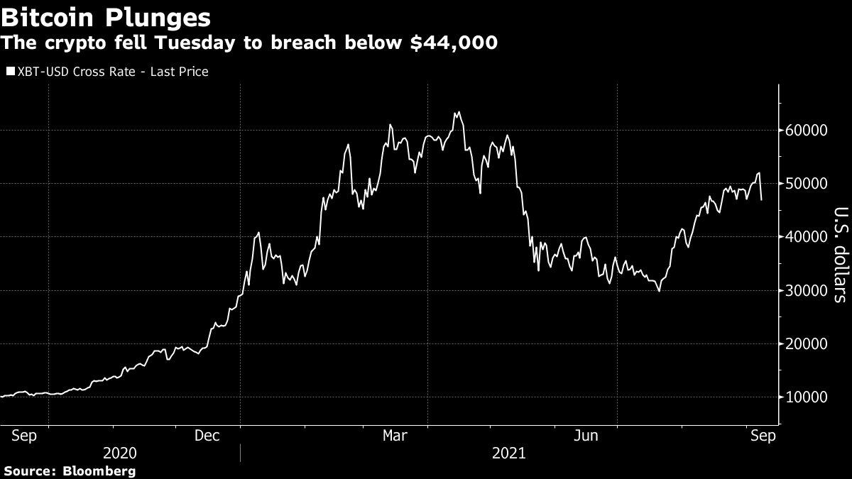 I've written previously that one of Bitcoin's strengths seems to be the sheer number of narratives people can attach to it. At various times Bitcoin has been lauded as a method of payment, a speculative asset whose value is destined to go up, a hedge against inflation, a way of disintermediating traditional banks, a way of literally saving the planet or chipping away at governmental power, and so much more. Bitcoin is a thing on which people can project their hopes and dreams — whether it's for a fairer society, a more inclusive financial system, or simply a better future for themselves. It's one of the few major cryptocurrencies that can do that, as some of the more popular ones (such as Ether, Solana, Cardano, etc.) come with a specific "use case" attached to them.  On days like today, however, you can see the downside of a momentum-driven asset. Bitcoin dropped as much as 17%, with the Bloomberg Galaxy Bitcoin Index falling as much as 19%, on the day El Salvador officially adopted it as legal tender. It's not the first time the cryptocurrency has followed an extreme pattern of "buy the rumor, sell the fact" — it followed a similar pattern in other major "life events," such as when futures trading was announced and when it actually started. But it is a good reminder that a thing that runs on hopes and dreams can respond rather capriciously to reality. |