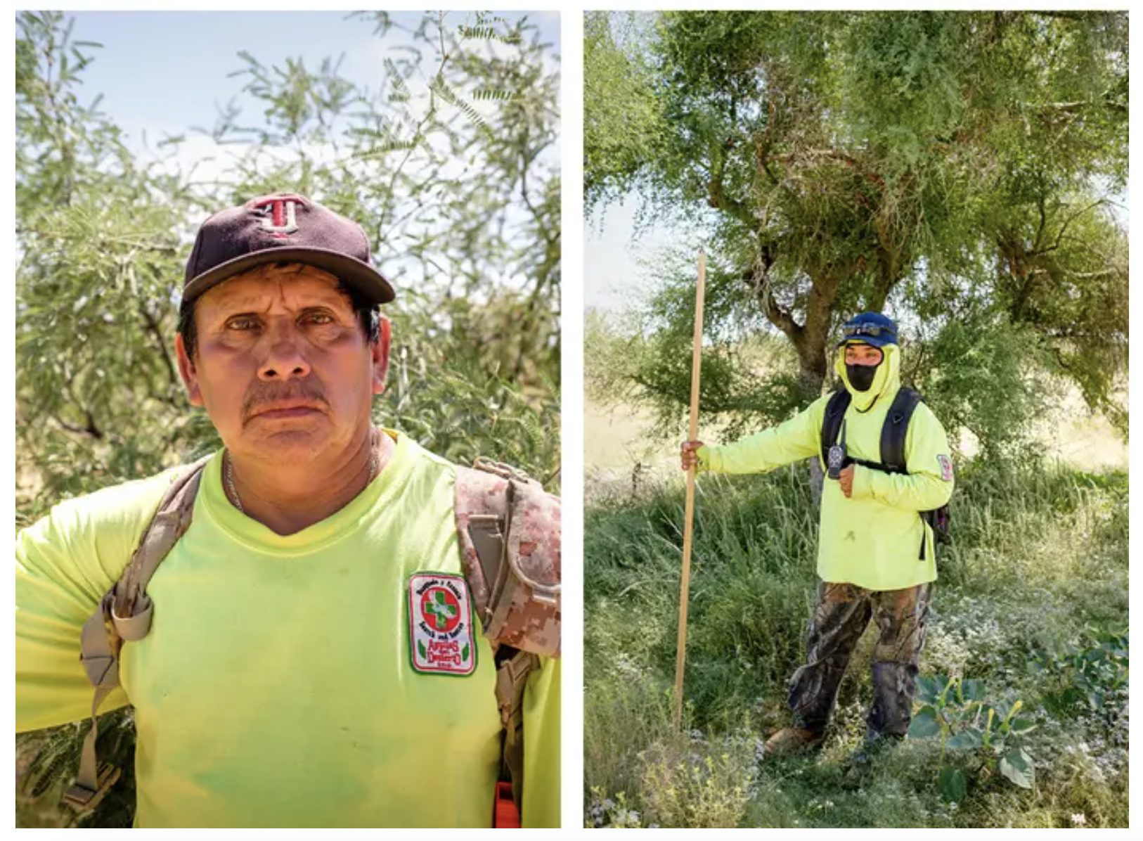 Volunteers are committed to searching for lost immigrants in the desert. From left to right: Ernesto Mejia and Margarito Cruz, two members of Aguilas del Desierto (Roberto "Bear" Guerra for BuzzFeed News) During the week, Aguilas del Desierto volunteers work on farms, as teacher's aides, and as medical assistants. But on certain weekends, they search for missing migrants along the US–Mexico border.