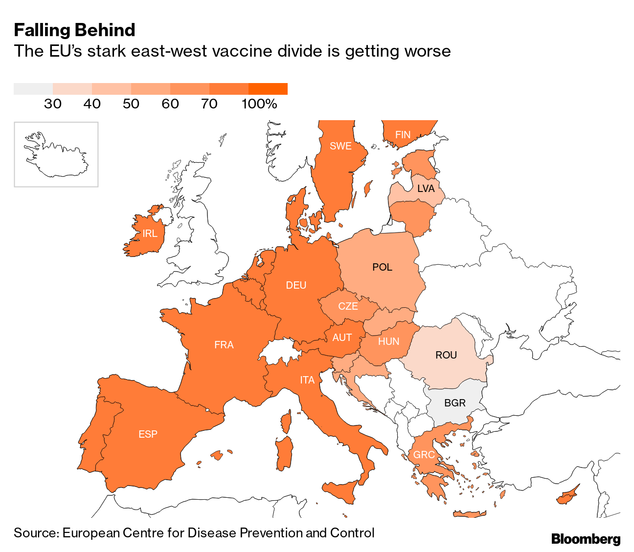 More than 70% of adults in the EU are now fully vaccinated against Covid-19, a key milestone for the bloc after its initial stumbles. But there are stark differences across countries, with a clear east-west dividing line.