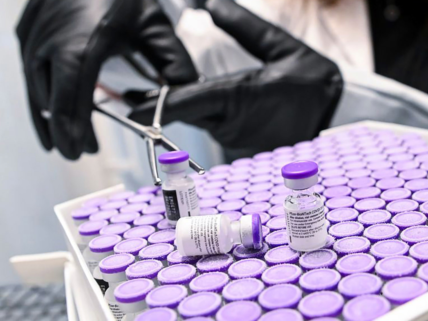 Pfizer's vaccine being defrosted before it can be given to patients in Belgium.