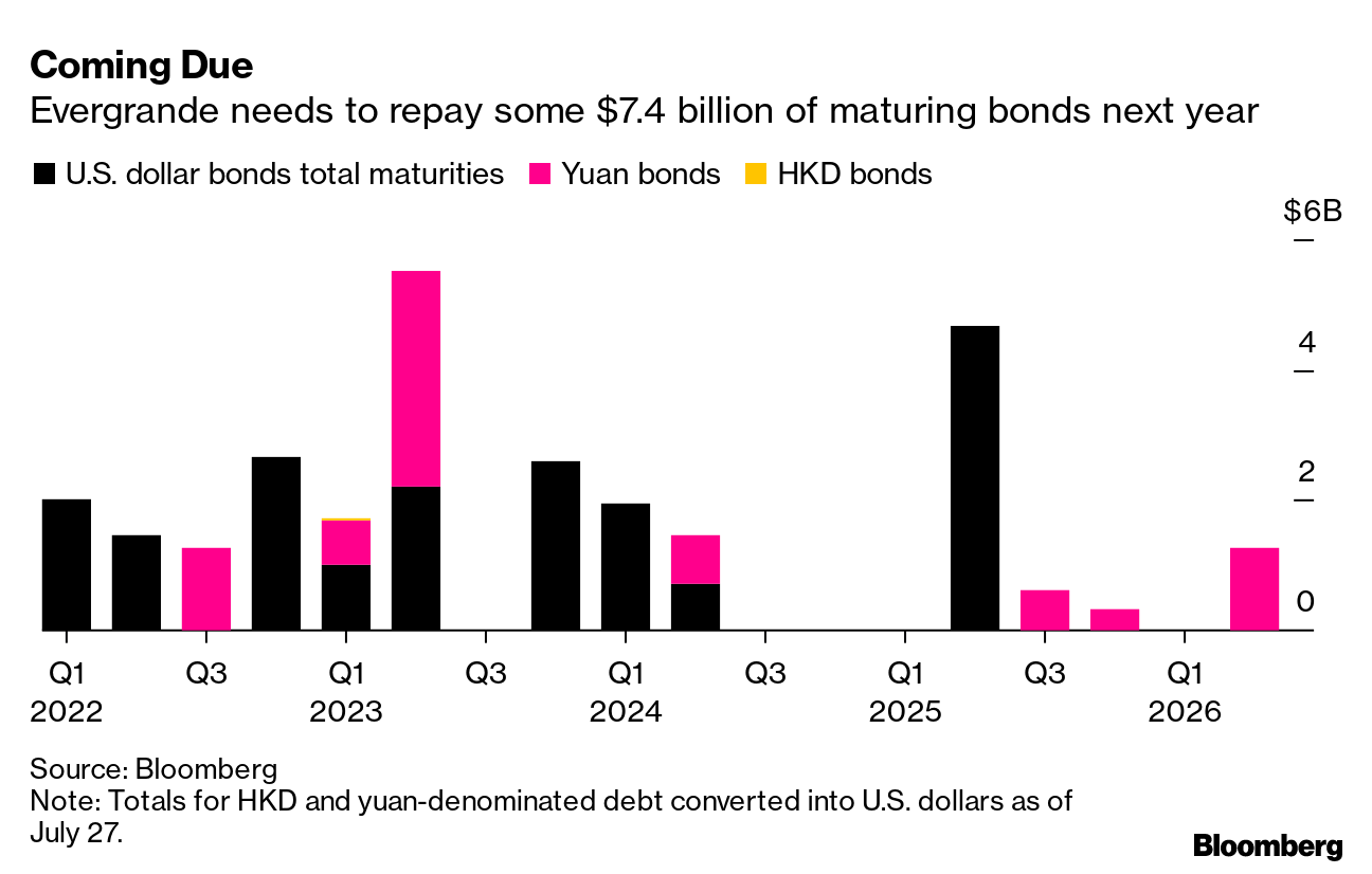 | There's never a good time to be a heavily indebted Chinese property developer, but now is certainly worse than most. Chinese President Xi Jinping's push for "common prosperity" has led to greater scrutiny of billionaires, debt and high home prices — none of which augurs well for the real estate industry. Indeed, economists at Nomura, Japan's largest brokerage, have argued that Xi's political priorities have laid the groundwork for China's battle with property to potentially become the country's "Volcker Moment." That phrase refers to the U.S. Federal Reserve's decision under former Chairman Paul Volcker to quickly raise interest rates in the late 1970s. Those actions caused a jump in unemployment but also tamed inflation, setting the stage for an economic boom over the next two decades. If policy makers in Beijing have in fact steeled themselves to tame home prices, the short-term pain could be tremendous, even if the longer-term implications are rosy. For a sense of what's at stake, look no further than the tumult unfolding around Evergrande, the world's most-indebted real estate company. The firm's finances have been under strain since late last year as Beijing began barring developers from additional borrowings until they brought their leverage down to within regulatory requirements. In response, Evergrande has been scrambling to sell assets so that it can secure the cash needed to pay off its debts. Whether it can do that quickly enough came into focus this week with the release of its first-half financials.  In the first six months of the year, Evergrande was able to cut the amount of interest-bearing debt on its books to a five-year low. Unfortunately, its overall liabilities increased thanks mainly to swelling bills it has yet to pay its suppliers. Cash and cash equivalents also plunged to a six-year low. The question for Beijing is whether Evergrande is too big to fail. China's leaders may ultimately decide they want to avert a costly collapse, even at the risk of appearing to tacitly condone the type of reckless borrowing that put Evergrande in the delicate position it's in. But with Xi's recent focus on reining in the disorderly expansion of capital, there are also plenty of reasons to think that they won't ease up on Evergrande and other overly indebted peers. Xi's campaign for "common prosperity" continued this week. Here are some of the latest developments: August was a tough month for China's economy. To bring an outbreak of the delta variant under control, authorities imposed quarantines, closed transportation links, cancelled events and administered more than 100 million tests. It worked, but there was an economic cost. Services industries suffered most notably, with a government-compiled gauge of activity in the sector falling into contraction for the first time since February 2020. Manufacturing weakened but still eked out an expansion in August, according to the official purchasing manager's index. A privately compiled measure, however, showed manufacturing contracted as well.  But don't expect weak economic data for August to dissuade Beijing from pursuing its Covid-zero strategy. Economists still expect the annual expansion to come in well ahead of the government's 6% target for the year — likely meaning it'll continue to prioritize virus containment over economic growth. Once every five years, China's Communist Party executes a carefully choreographed handover of power that culminates at a national congress in Beijing and the unveiling of a new Politburo Standing Committee. The year leading up to that event is one of intense politicking as cadres jockey not only for positions at the highest echelons of power but for promotions throughout the party's hierarchy. It was announced this week that the party's Central Committee will have its annual plenum in November. That gathering, which brings together about 400 senior state leaders, ministers, military chiefs, provincial bosses and top academics, will kick off the march to the next congress in late 2022. While every party congress is consequential, what will set this next gathering apart is that Xi, in a turn away from recent tradition, could be appointed for a third term. Indeed, in announcing the November plenum this week, the official Xinhua News Agency seemed to nod to that possibility. One of the topics to be discussed at the meeting, Xinhua reported, will be upholding Xi's core position within the party.  President Xi Jinping at the Great Hall of the People in Beijing on June 29, 2021. Photographer: Xinhua News Agency/Xinhua News Agency And finally, a few other things that caught our attention: |